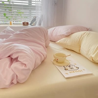 Pastel Pink & Cream Solid Bedding Set