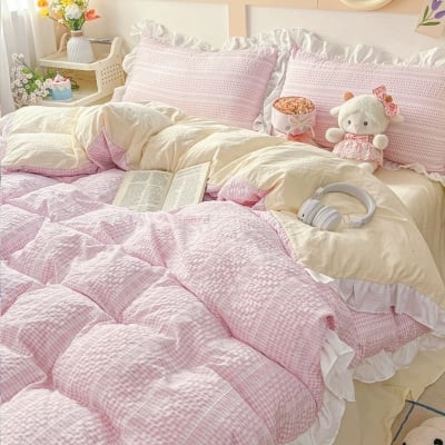 Gingham Lace Ruffle Bedding Set