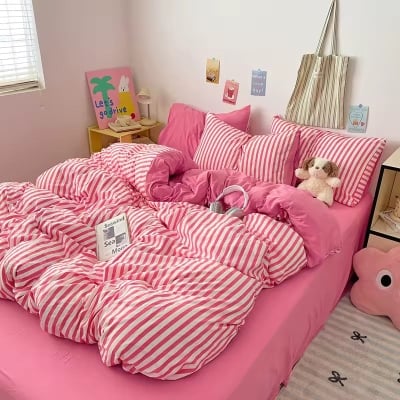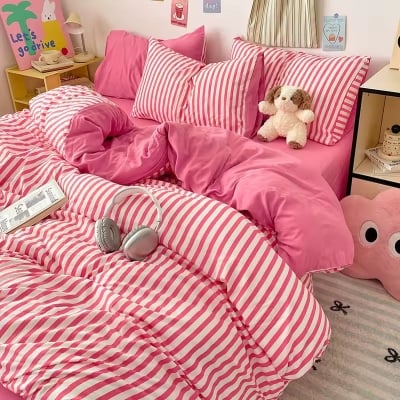 Pink Striped Duvet Cover Set