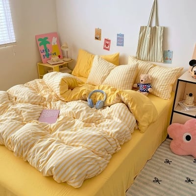 Yellow Striped Bedding Set