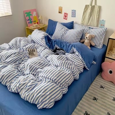 Blue Striped Bedding Set