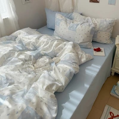 Light Blue Minimalist Bedding Set