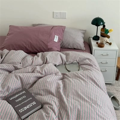 Purple Striped Cotton Duvet Cover Set