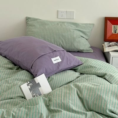 Mint Stripe Cotton Duvet Cover Set