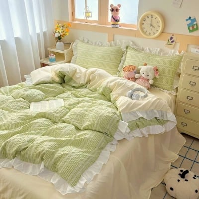Green & Cream Ruffle Bedding Set