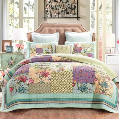 Bohemian Floral Stitching Quilt with Pillowcases
