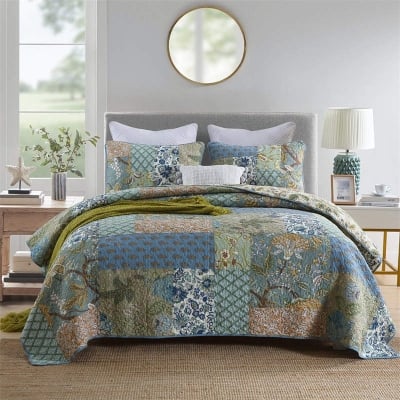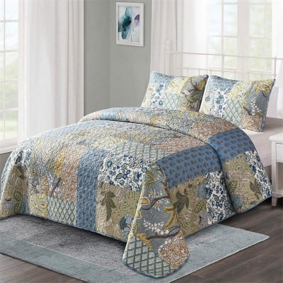 Boho Patchwork Floral Quilt with Shams