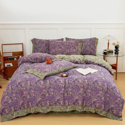 Boho Flower Purple Cotton Bedding Sets (4PCS)