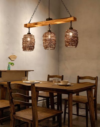 Industrial Rattan Dining Room Chandelier