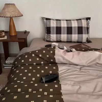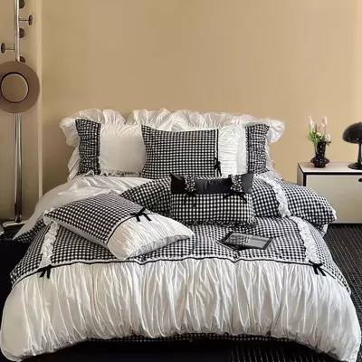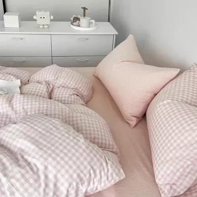 Cotton Small Gingham Duvet Cover - Baby Pink