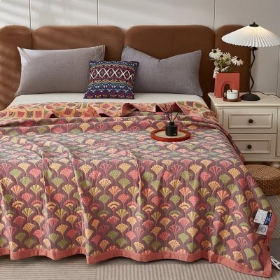 Elegant Leaf Three Layers Cotton Gauze Quilt