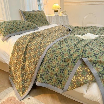 Rural Leaf Breathable Cotton Gauze Quilt