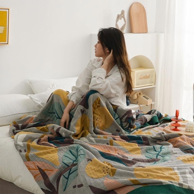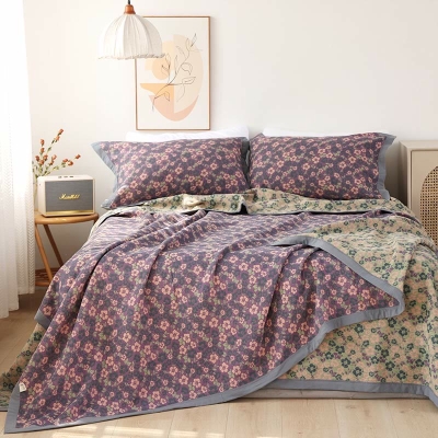 Floral Jacquard Cotton Gauze Reversible Quilt