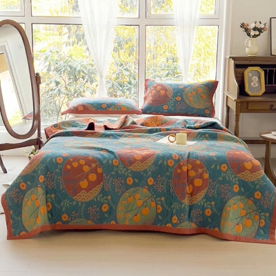 Persimmon Flower Cotton Double Side Quilt