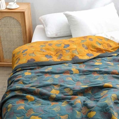 Ginkgo Leaf Cotton Gauze Reversible Quilt