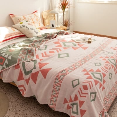Cotton Gauze Bohemian Geometric Reversible Quilt