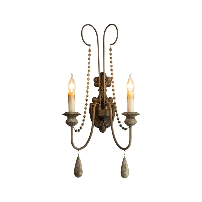 White Metal Wall Sconce with Wood Backplate and 2 Bulbs
