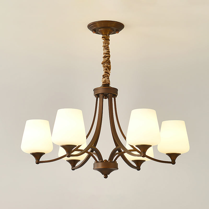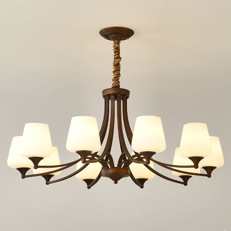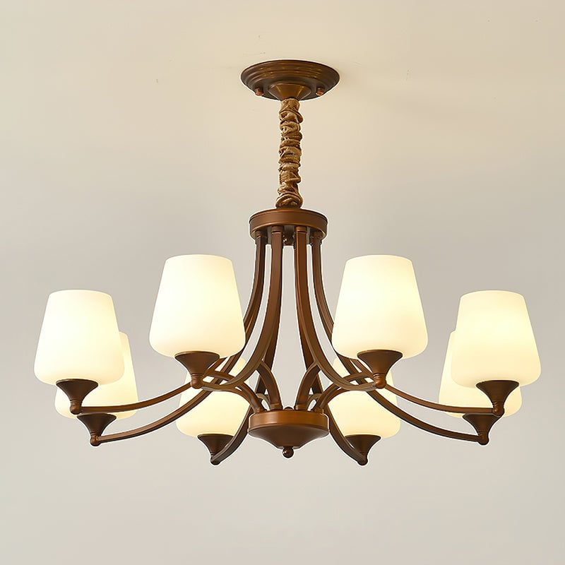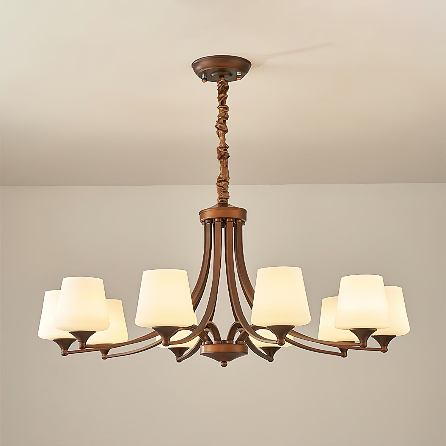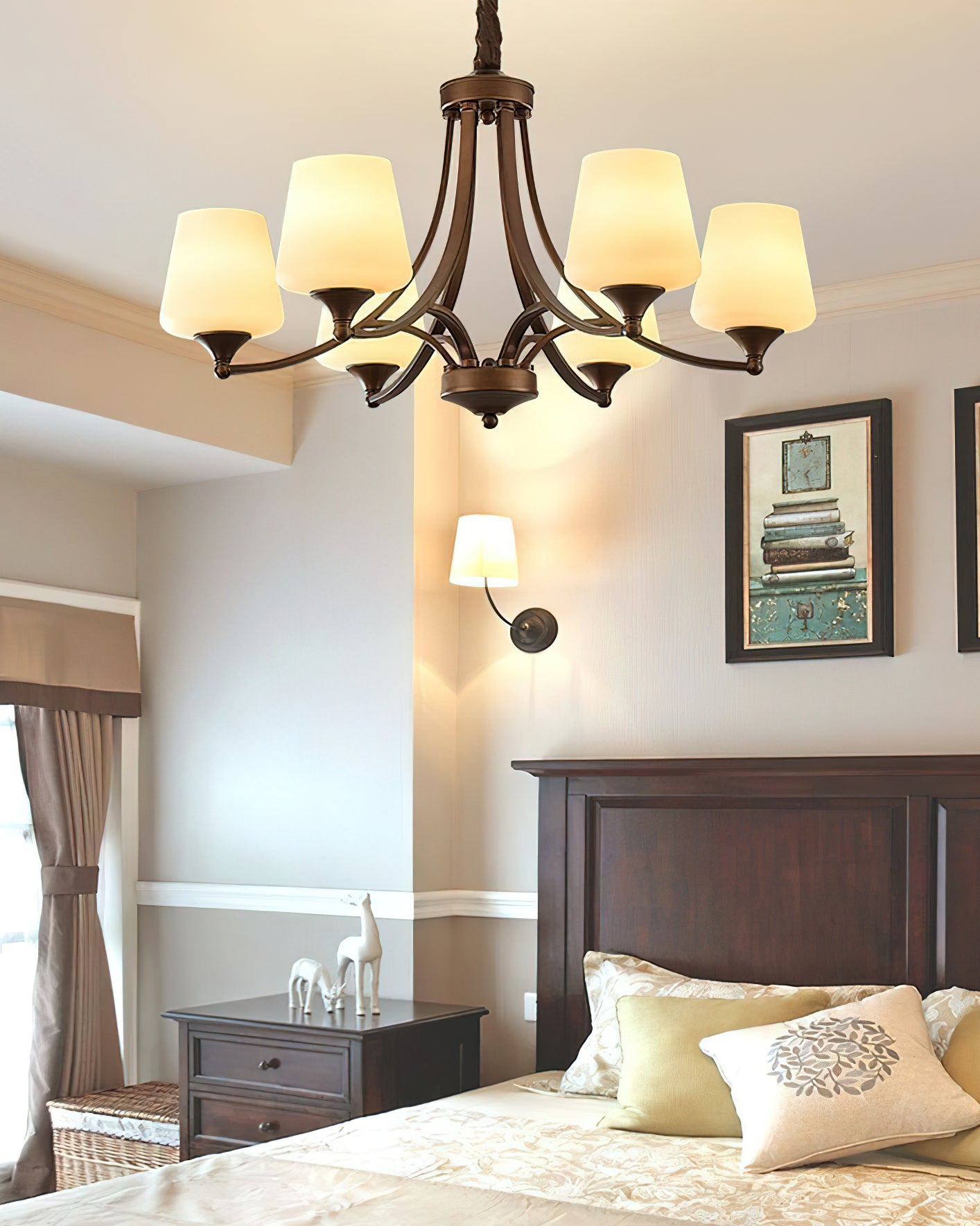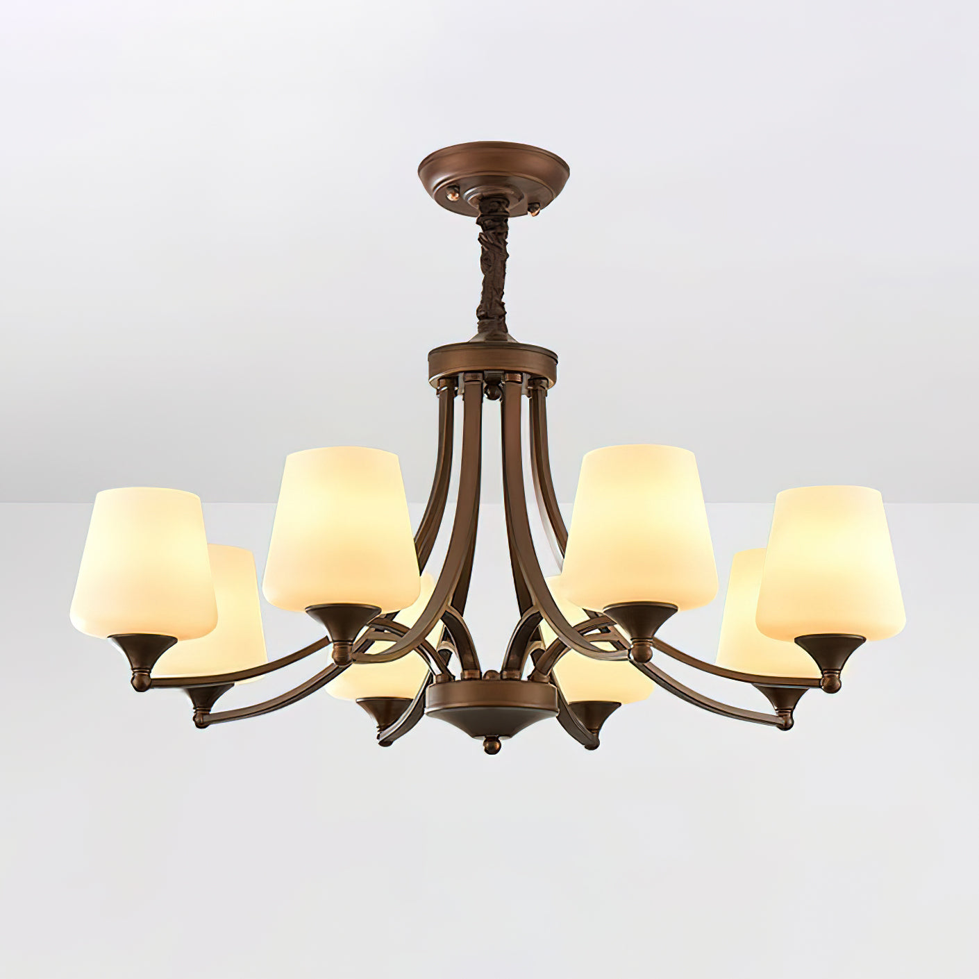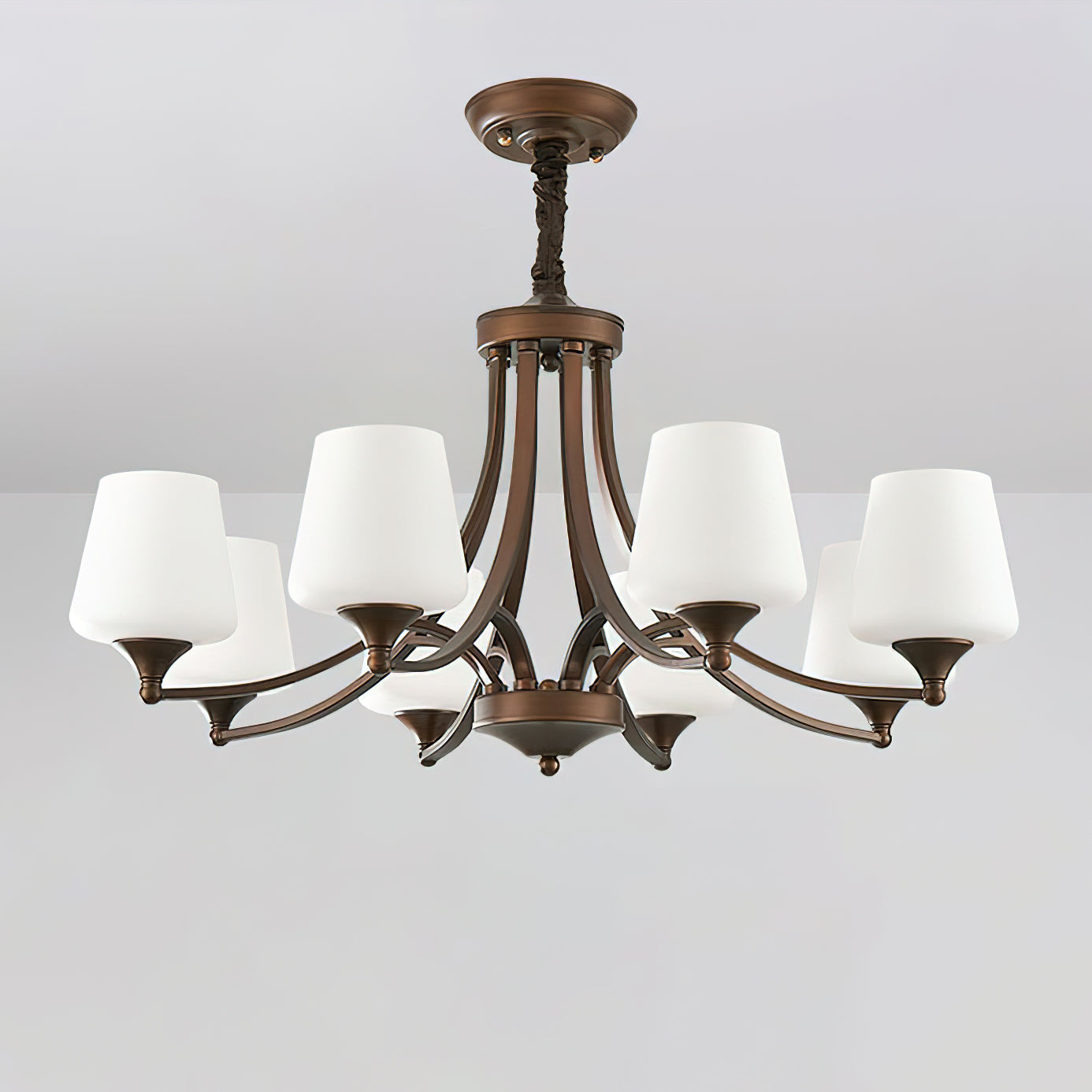 Inspired by the warmth of a sunset, the Adalyn Chandelier by Mooijane features a rich reddish-brown frame paired with frosted glass shades that cast a soft, ambient glow. Blending rustic charm with modern elegance, it’s a perfect centerpiece for both classic and contemporary interiors.