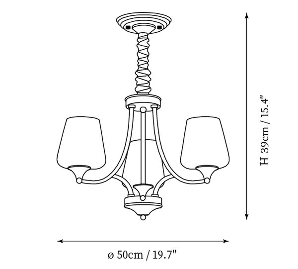 - 3-Lights Size: Dia 50cm x H 39cm / ∅ 19.7″ x H 15.4"
