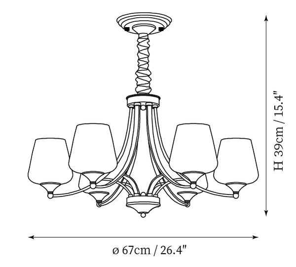 - 6-Lights Size: Dia 67cm x H 39cm / ∅ 26.4″ x H 15.4"
