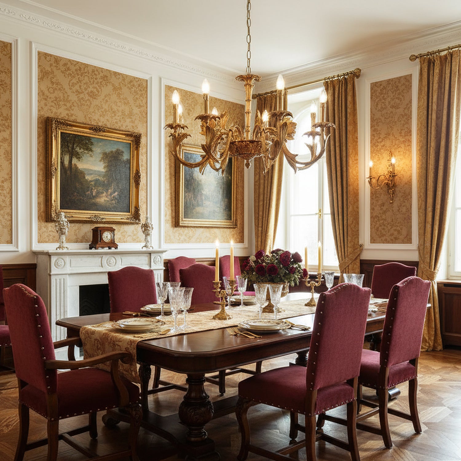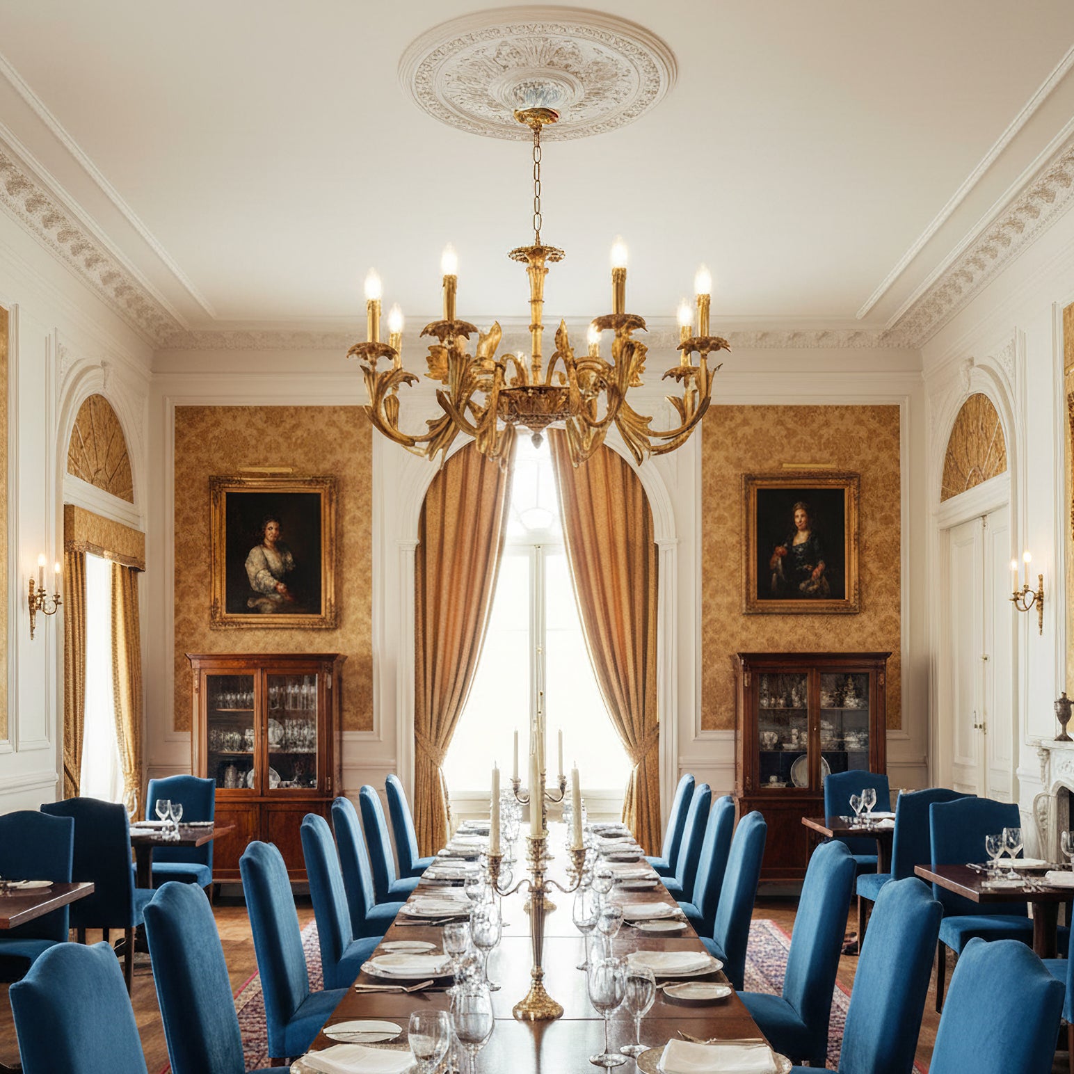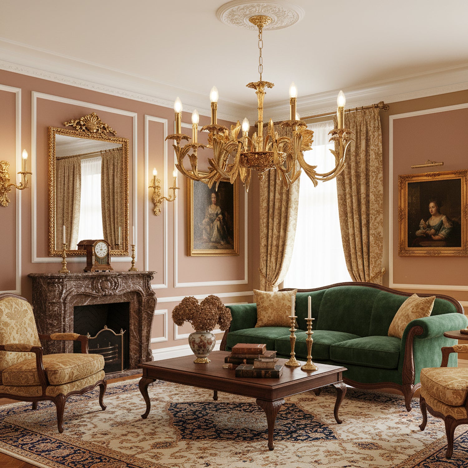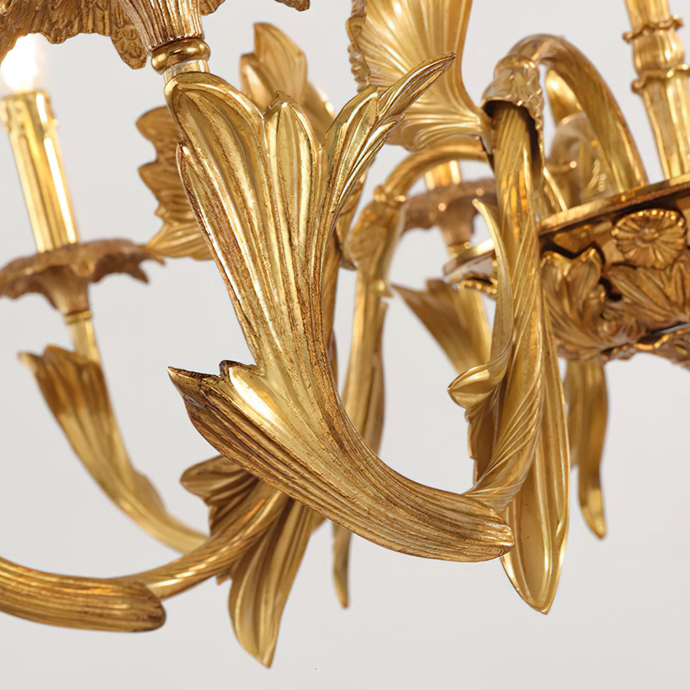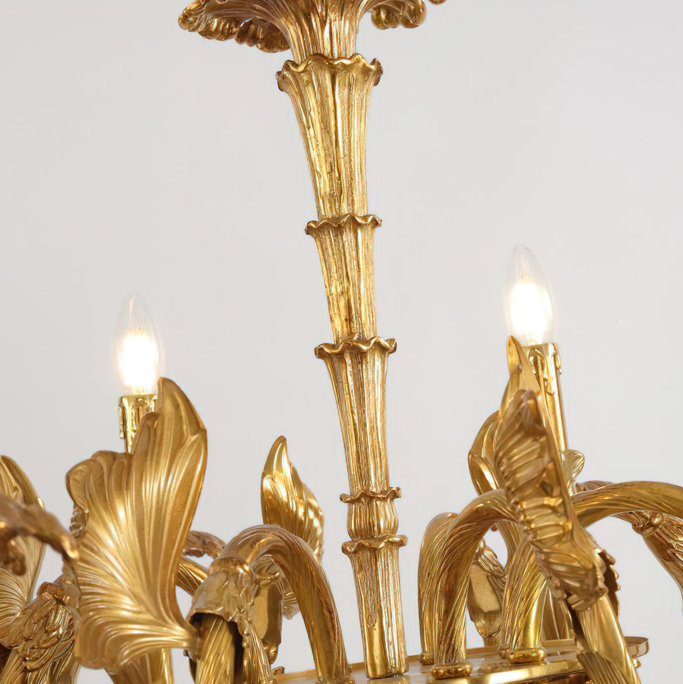 The Adeline Chandelier by Mooijane showcases classical grandeur and exquisite craftsmanship. Finished in rich gold, its sculptural arms feature delicate leaf motifs inspired by baroque artistry. Candle-style lights cast a warm, radiant glow, enhancing the chandelier’s regal character. Perfect for dining rooms, grand foyers, or formal living spaces, this timeless piece brings an aura of elegance and sophistication to any interior.