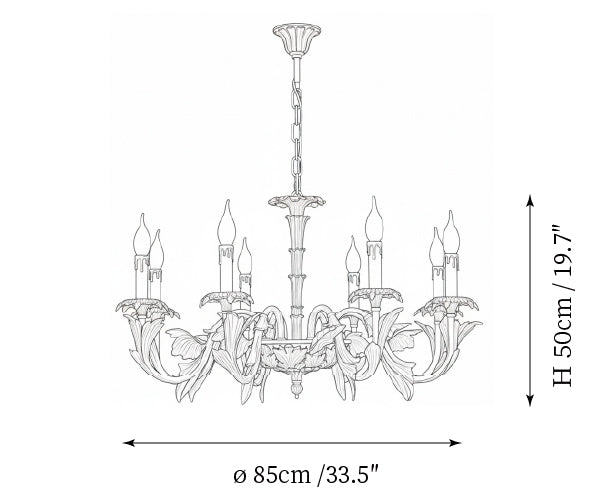- 8-Lights Size: Dia 85cm x H 50cm / ∅ 33.5″ x H 19.7″