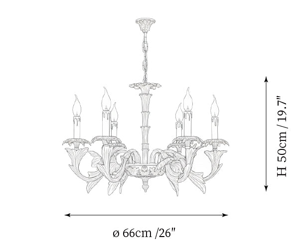 - 6-Lights Size: Dia 66cm x H 50cm / ∅ 26″ x H 19.7″