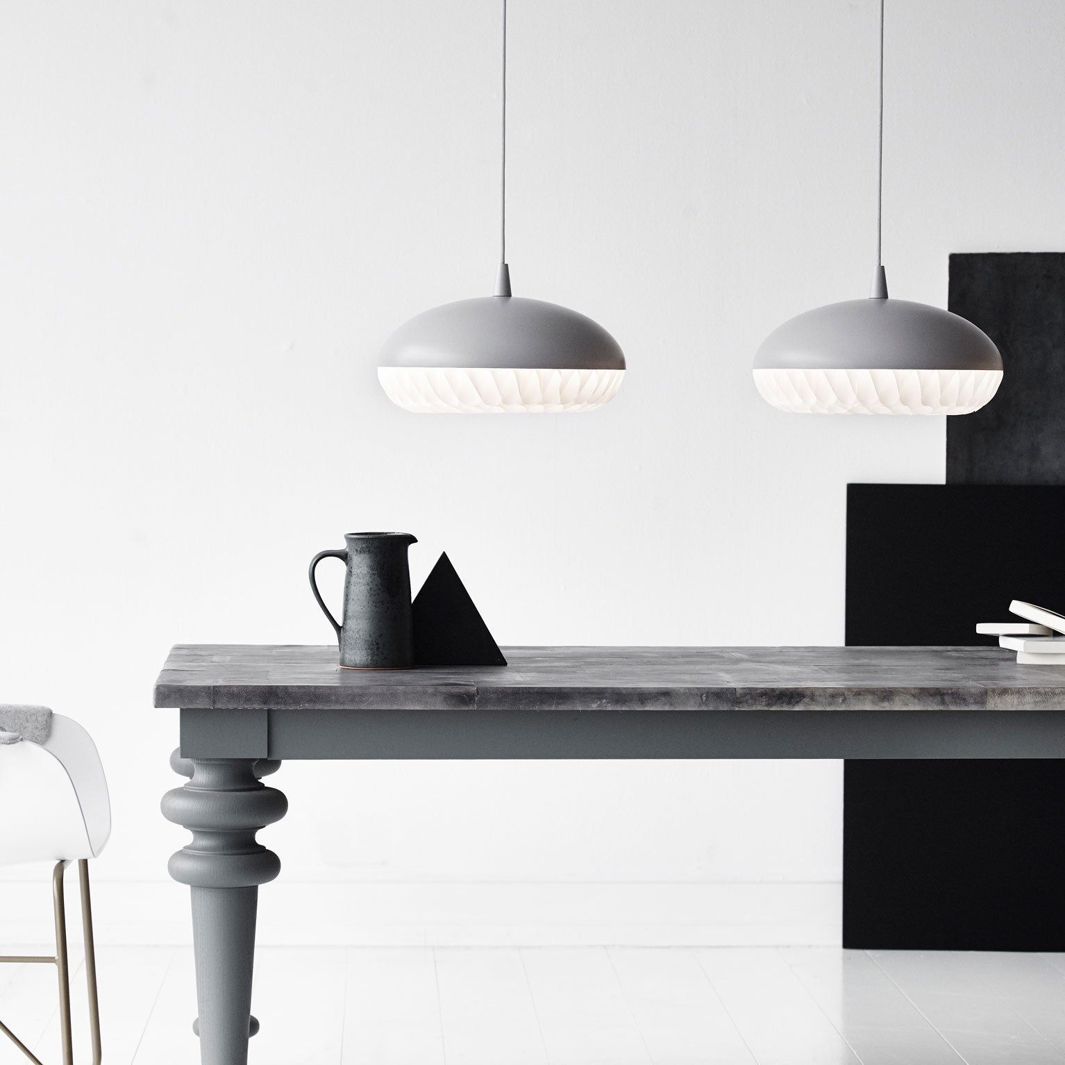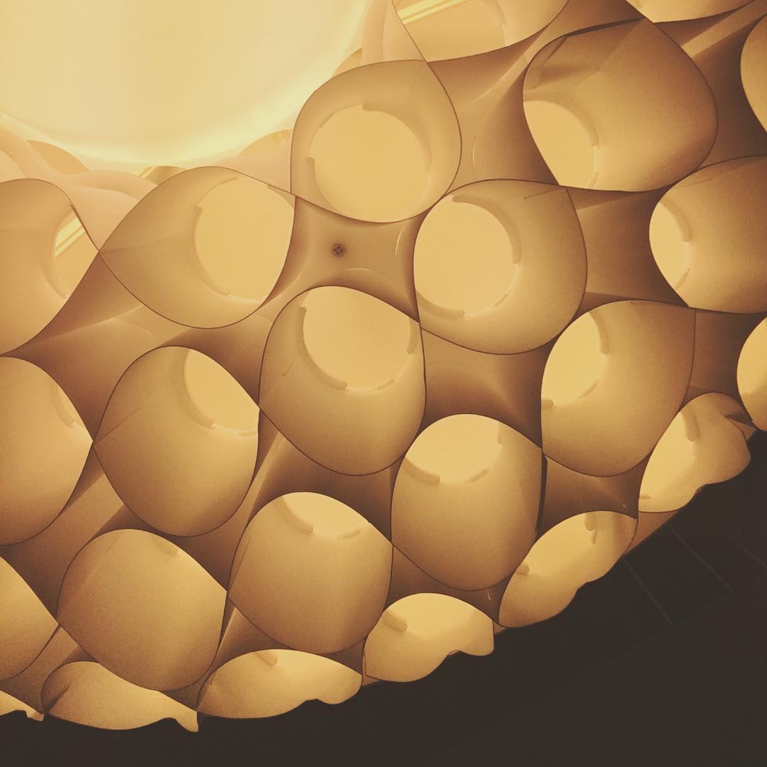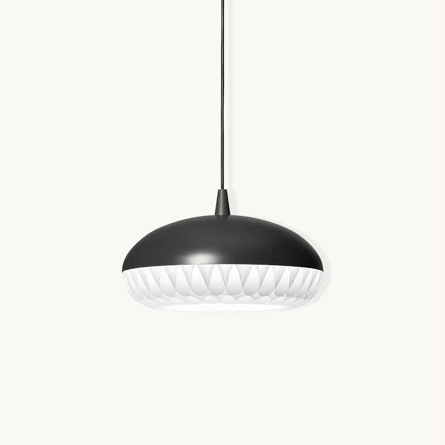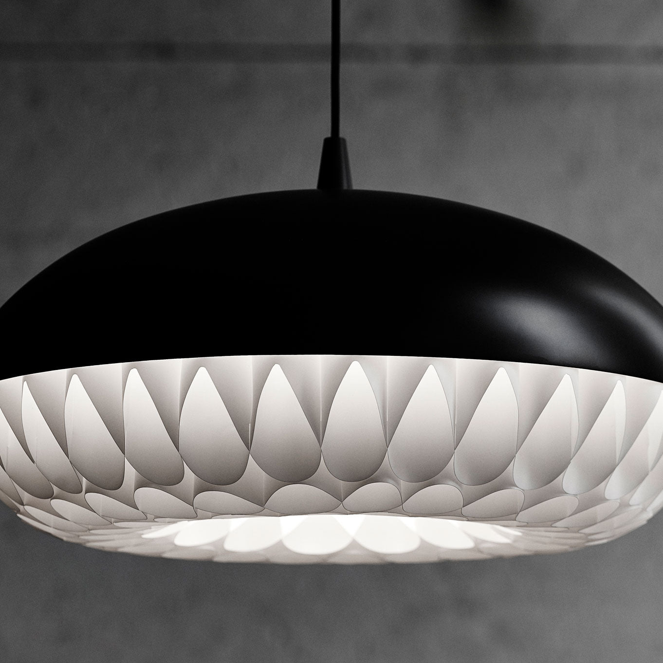 Aeon is a series of beautiful, harmonious, and striking pendants. This is the first pendant in history to take full advantage of the luminous qualities of metal and polypropylene in a single design. The simple upper shade ensures plenty of light downwards, while the lower shade in polypropylene illuminates and diffuses the light. The gauzy lower shade consists of 8 long bands carefully woven together to create round openings, allowing the light to stream through unhindered.