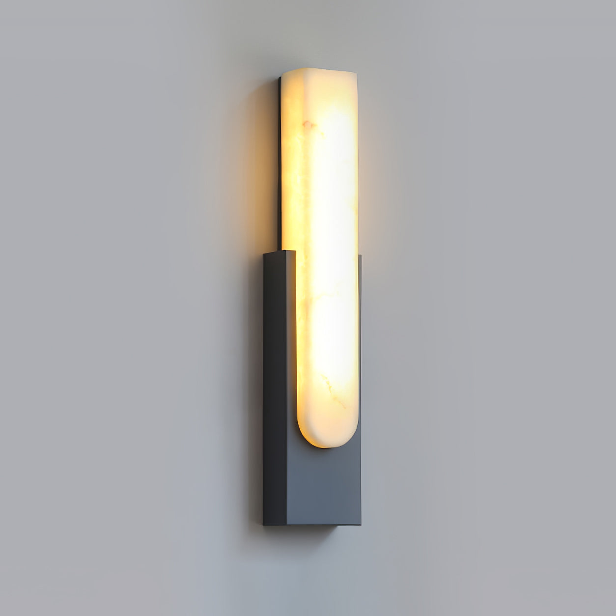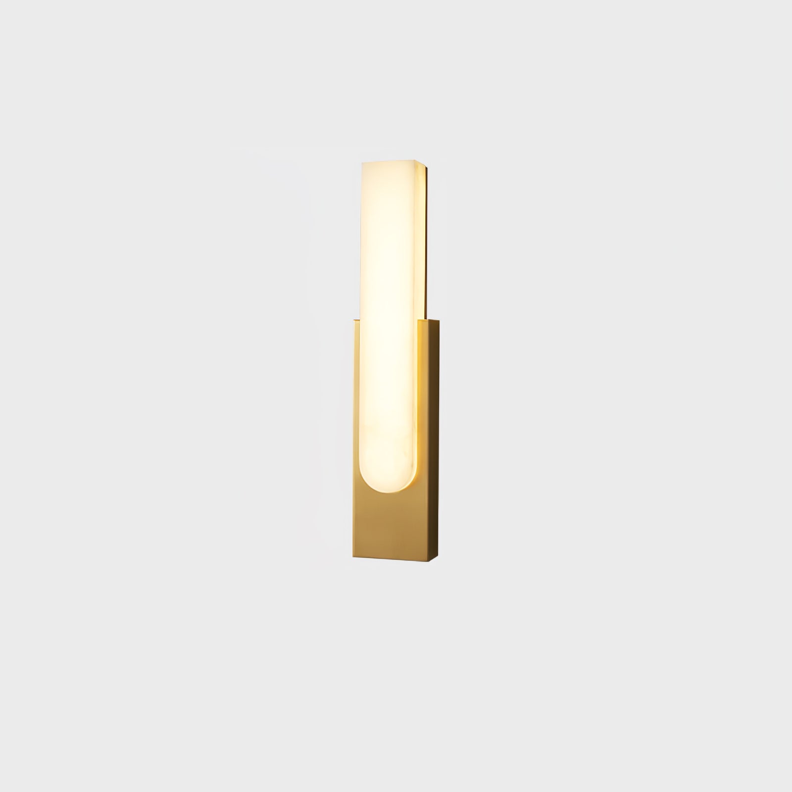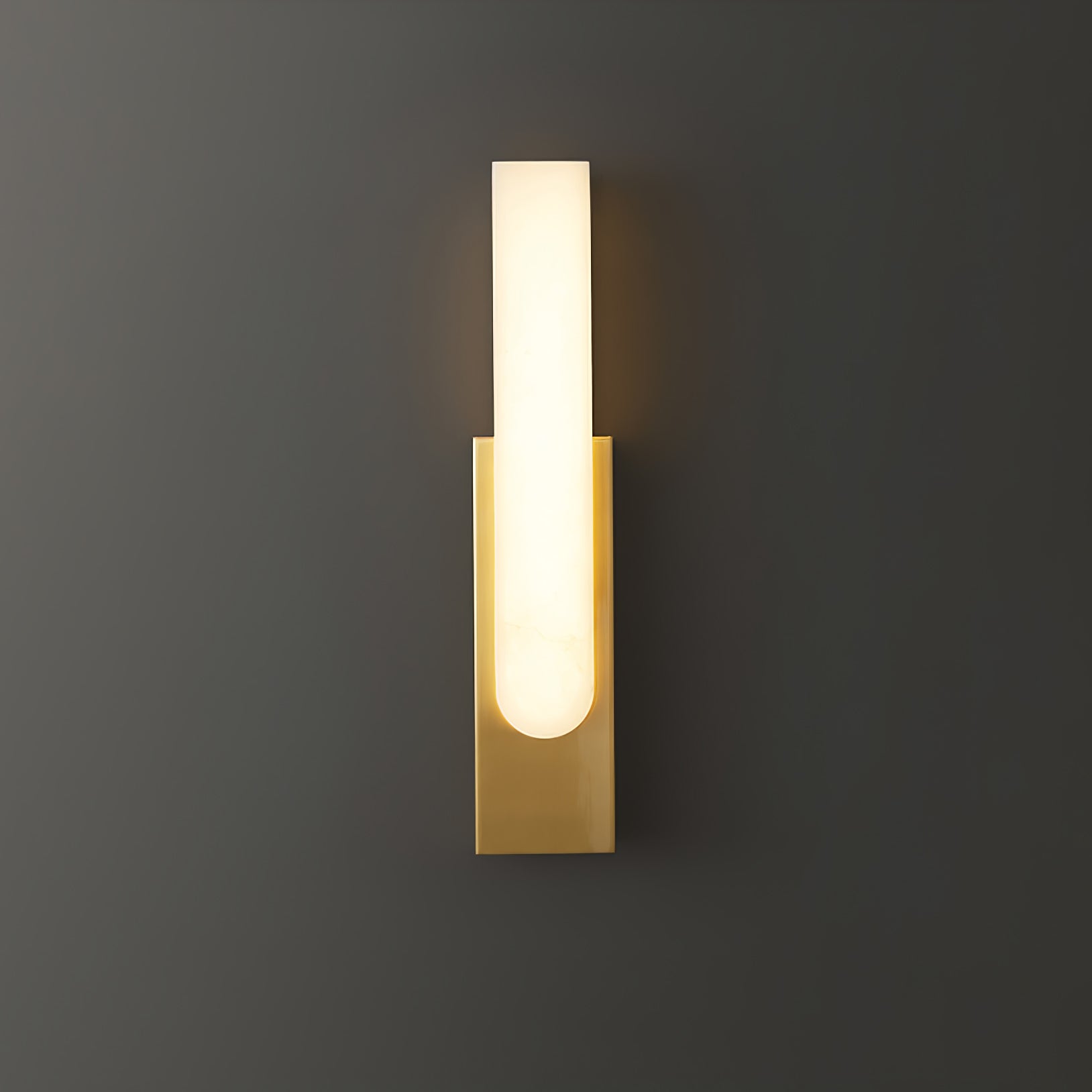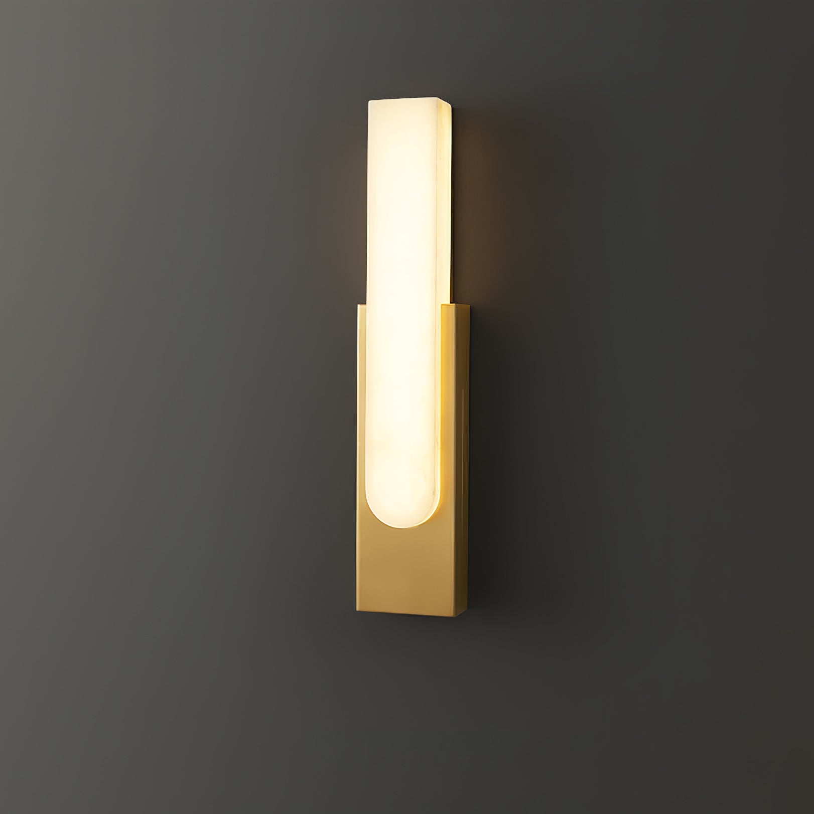 This sublimely modern light marries the purity of the brass base and the warmth of alabaster, a rare stone that makes each Agatha sconce unique. When illuminated, its inherent natural translucence comes alive, revealing veins distinct to each light.