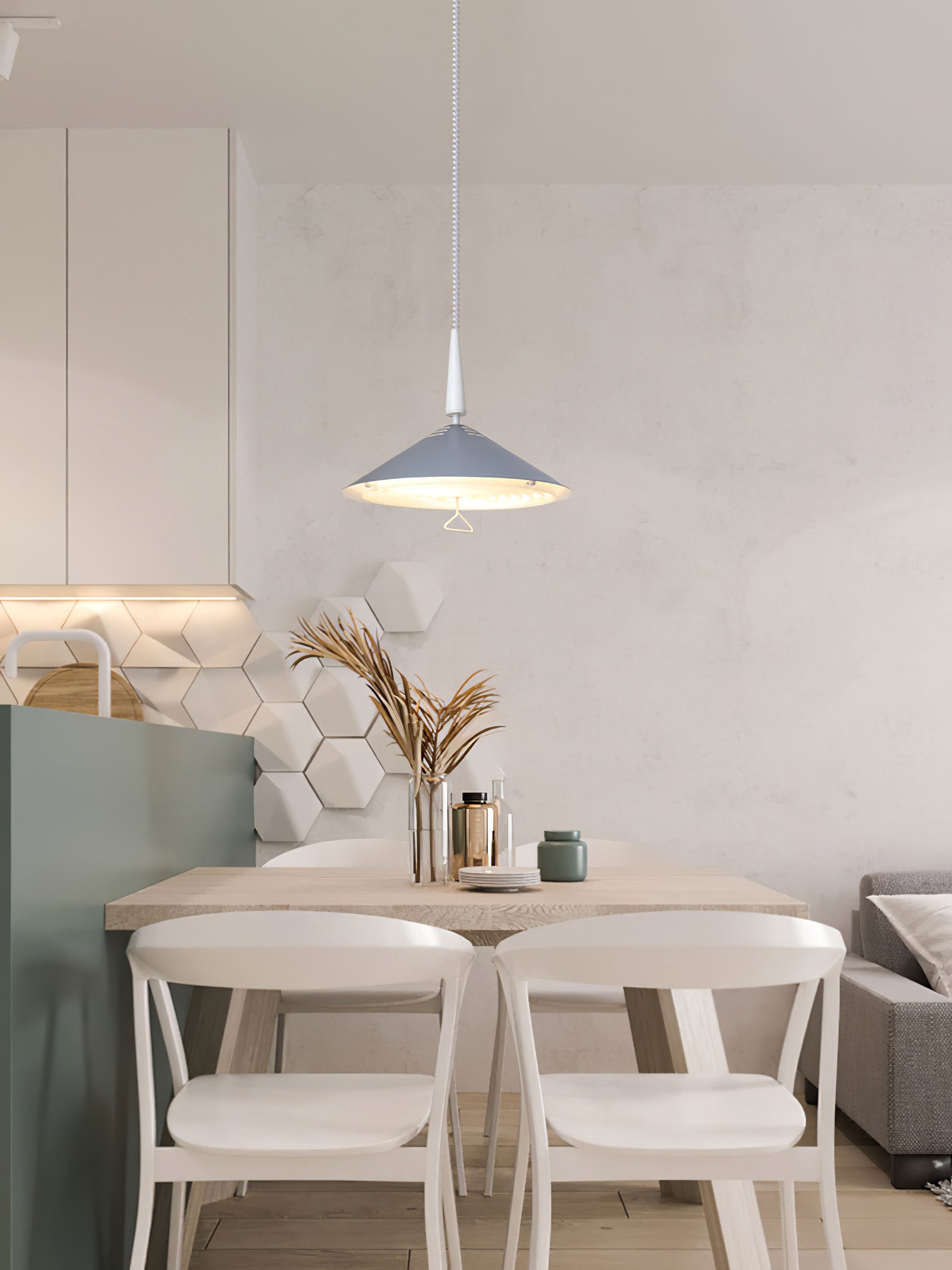 The Agnes Retro Triangle Pendant has a clean modern silhouette, fit for both modern and traditional spaces alike. The Frosted glass diffuser casts a soft, ambient glow, and can be easily twisted off when it's time to change the bulb.