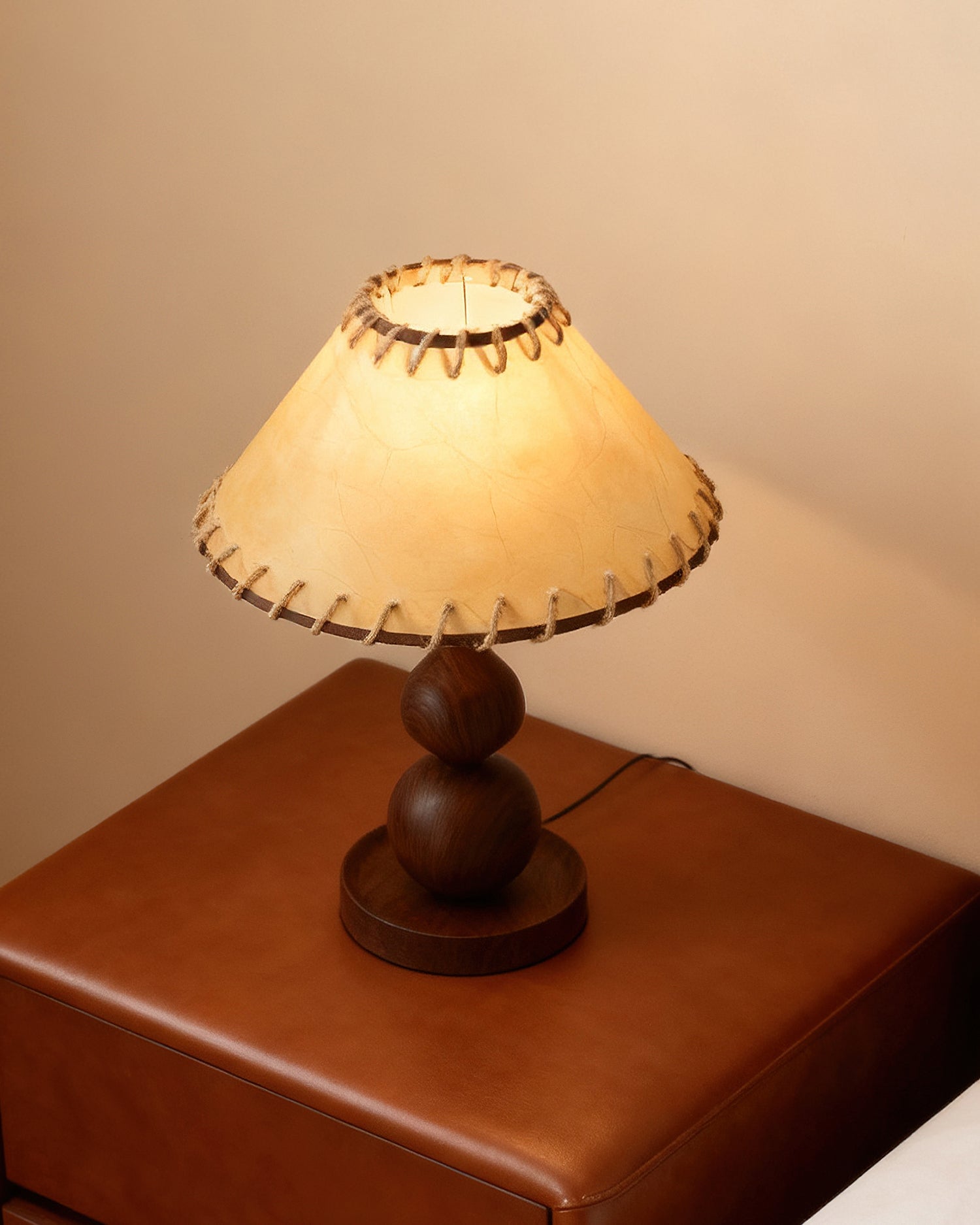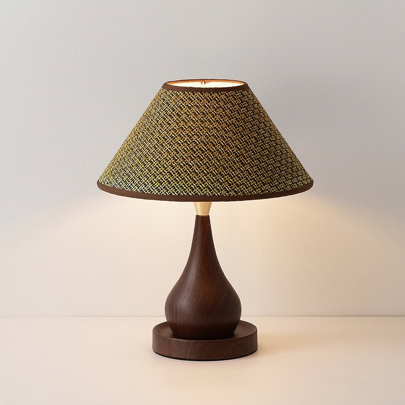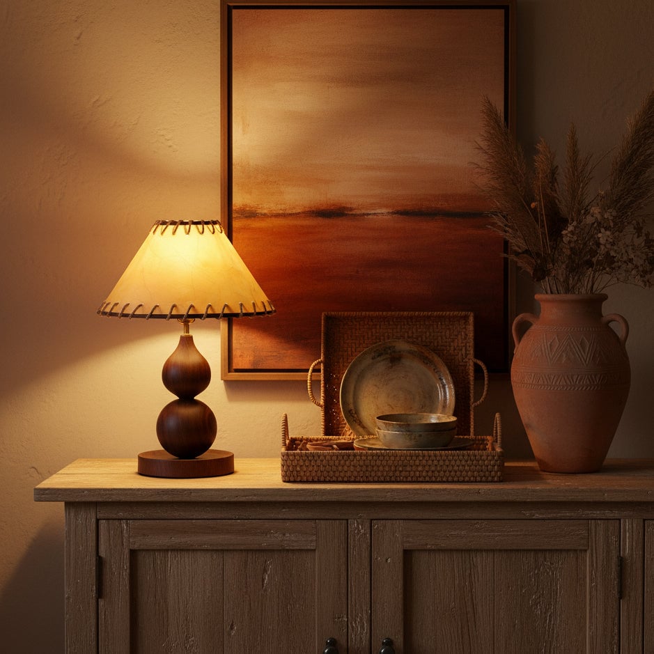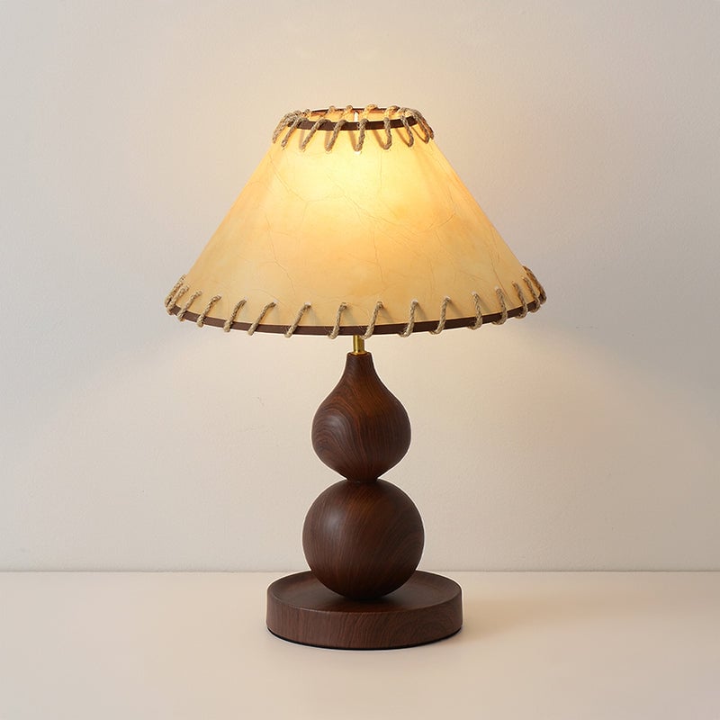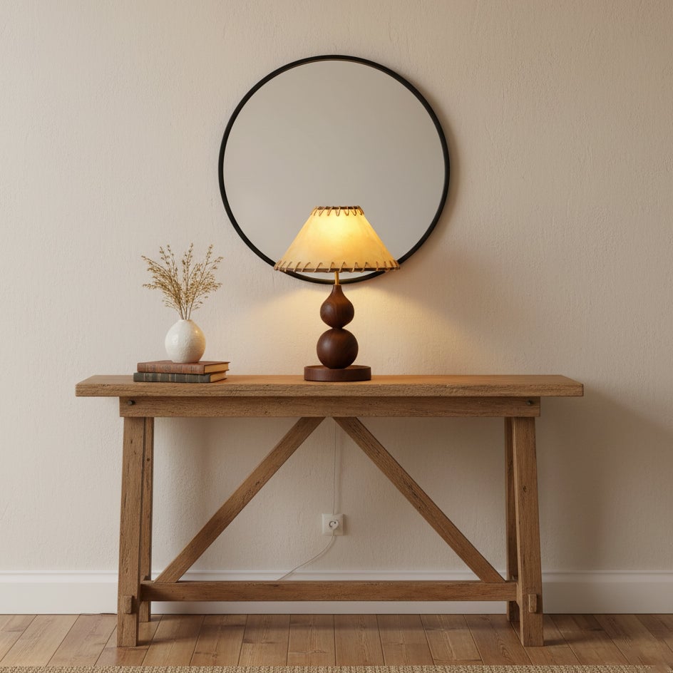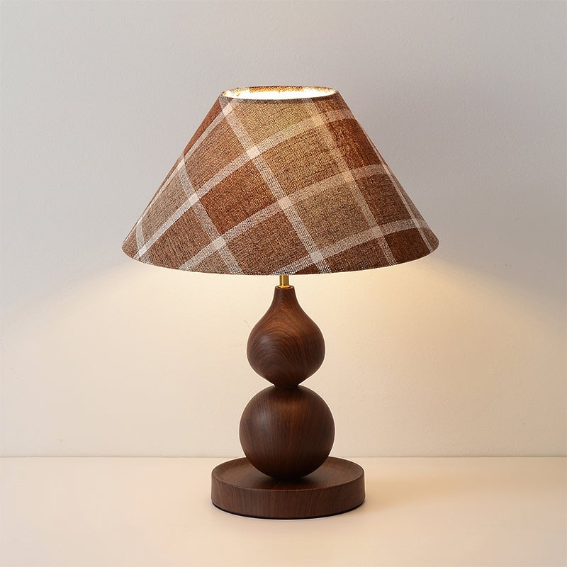 The Aikoz Table Lamp from Mooijane features a sculptural double-sphere wood-grain base paired with a classic tapered fabric shade. Its rounded wooden profile adds natural warmth, while the shade softly diffuses light, creating a calming, modern ambiance. Compact and versatile, it’s ideal for nightstands, side tables, desks, or entryway cabinets, providing both functional illumination and elegant style.