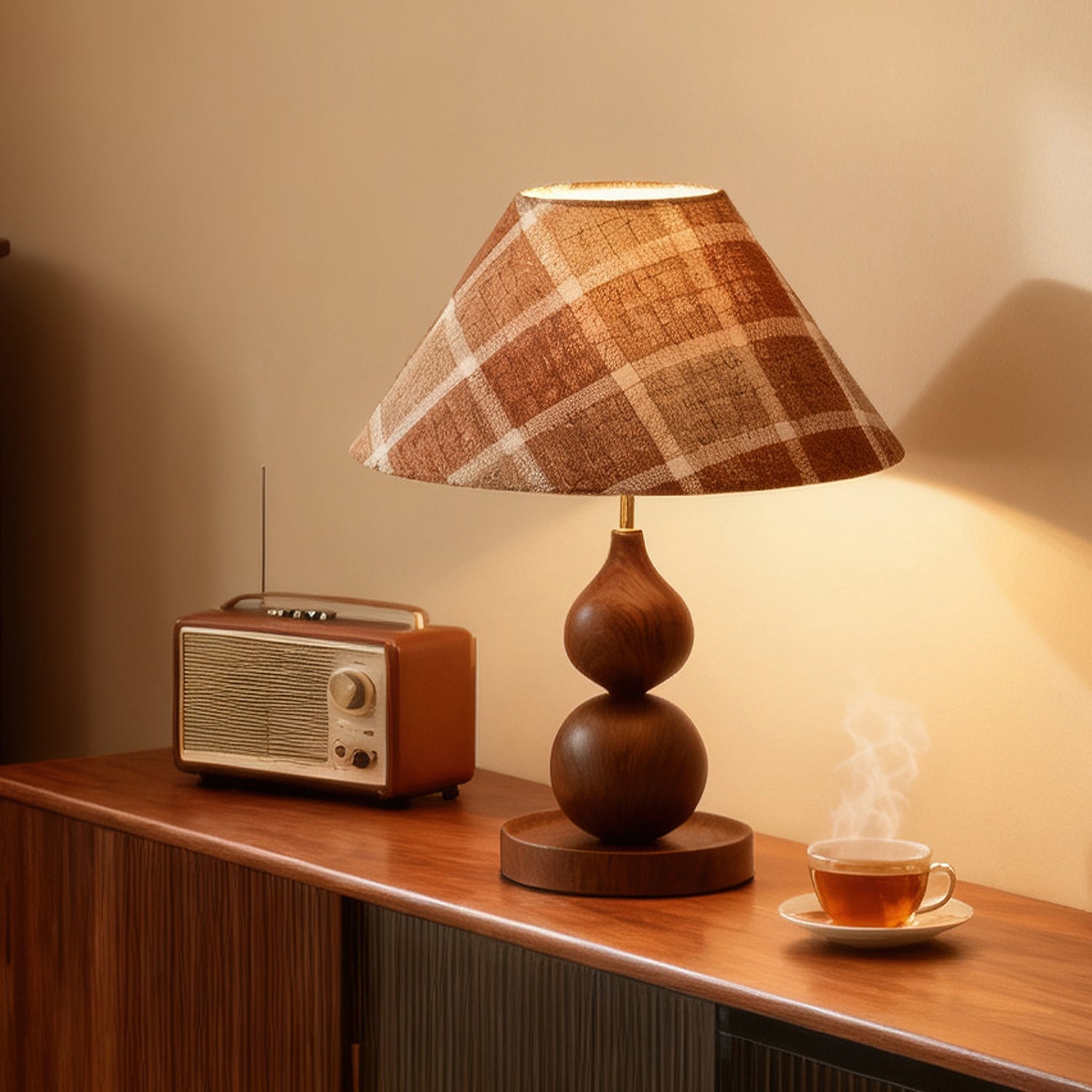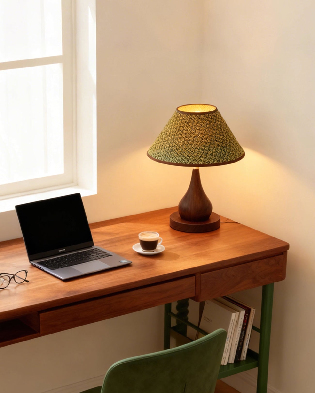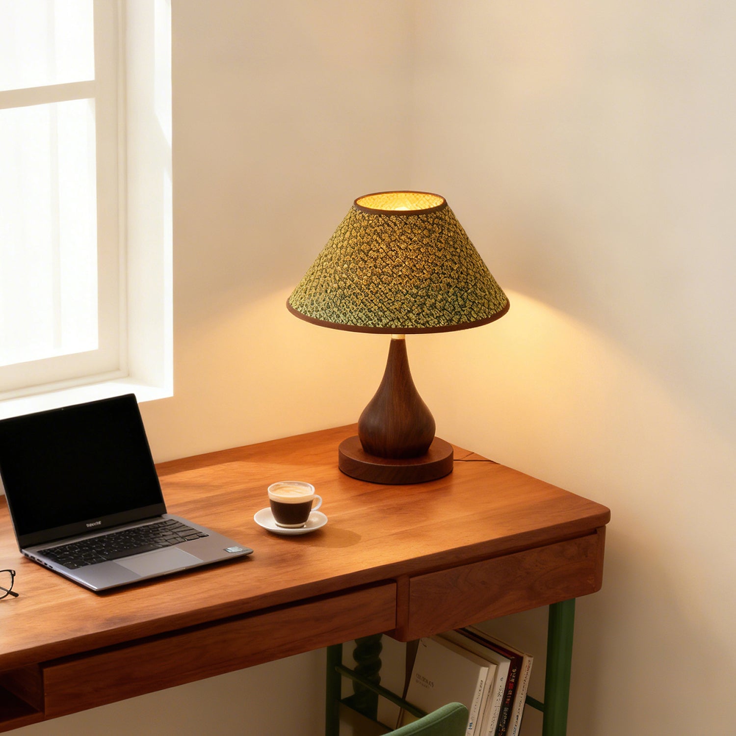 - Lampshade: Brown, Green, Beige.