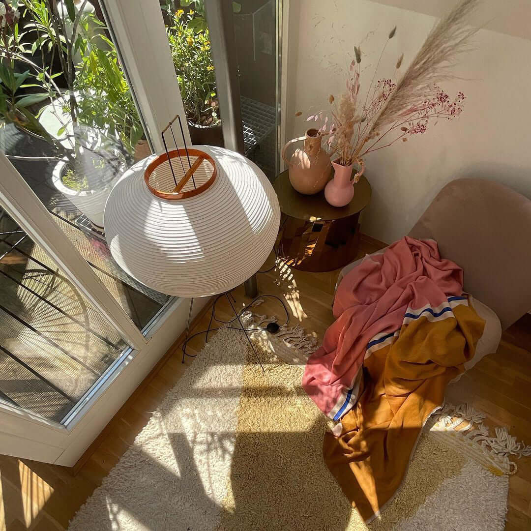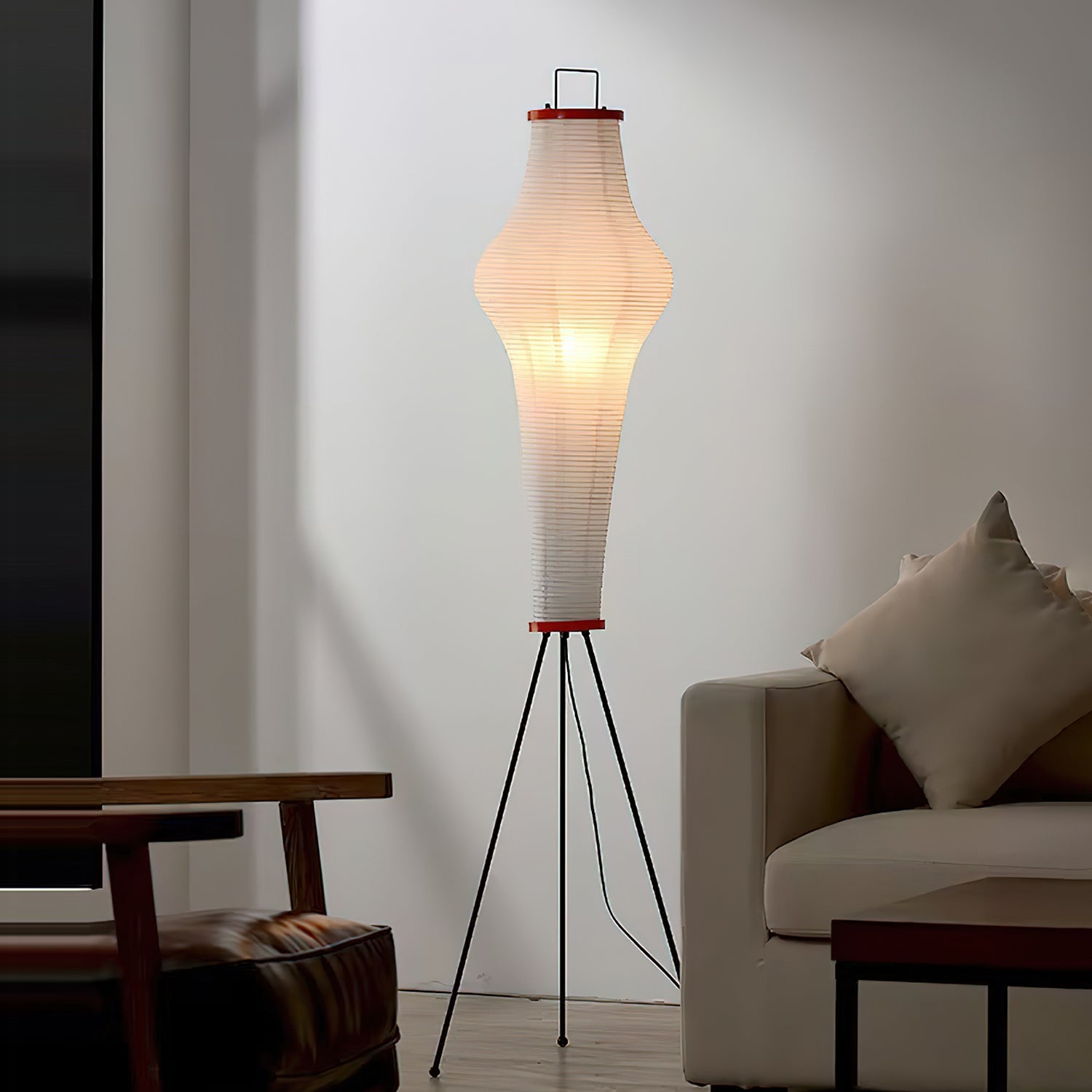 He took the design of these traditional lanterns for the occasion to create light sculptures made of wood and paper on his own. For the Akari Floor Lamp, the designer uses paper from the mulberry tree, because it softens the light, making it gentle and spreading it evenly.