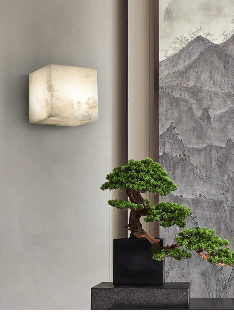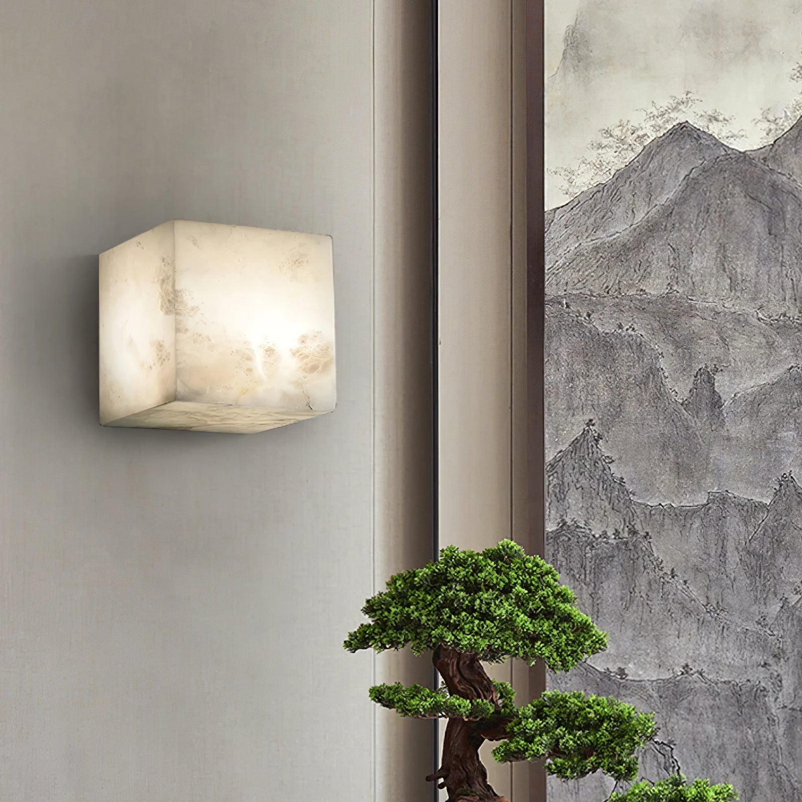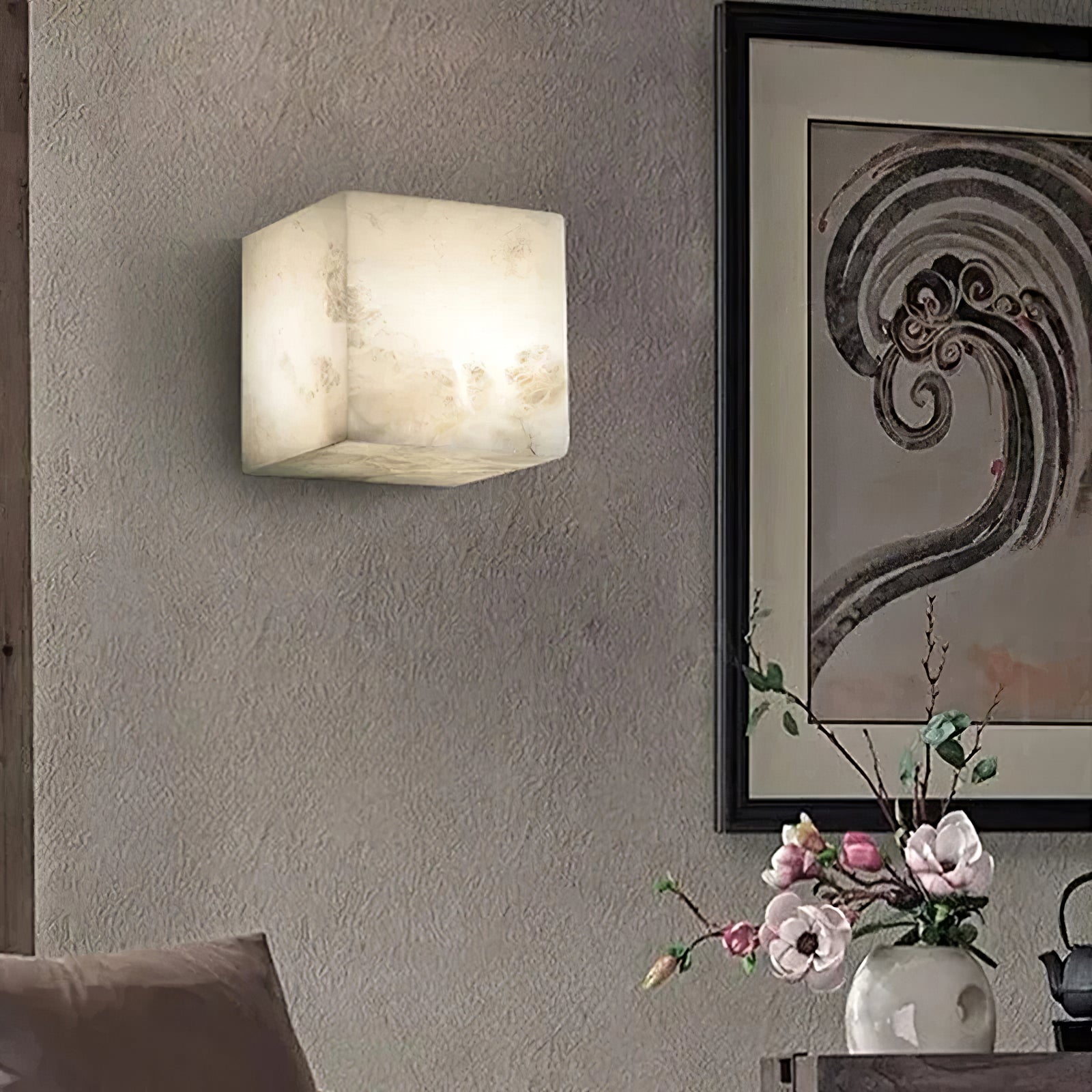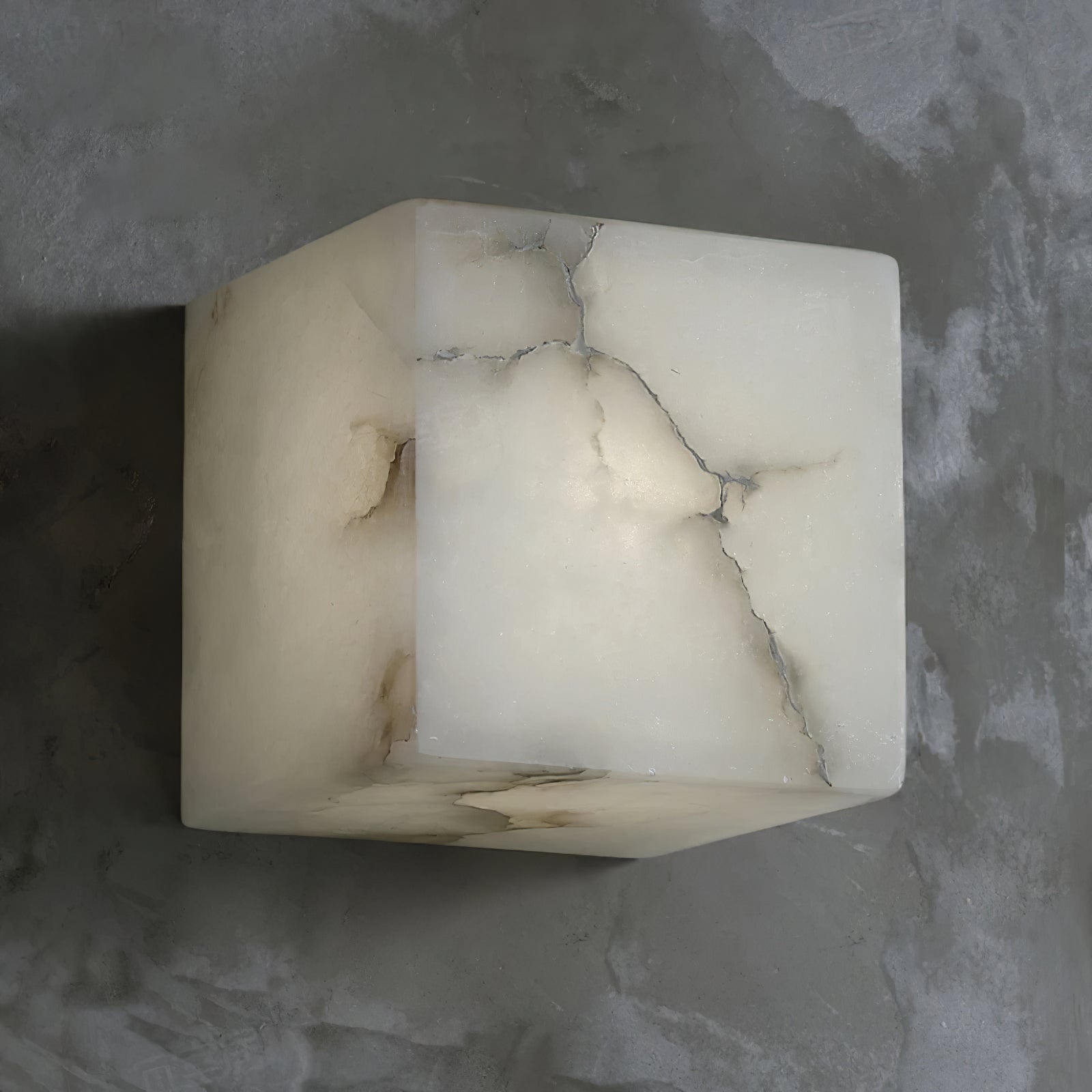 Enhance your home with the minimalist elegance of the Alabaster Cube Wall Light. This sleek wall light features a solid alabaster cube that emits a warm, ambient glow, perfect for modern interiors. Each piece is handcrafted, ensuring a unique and refined touch to any room.