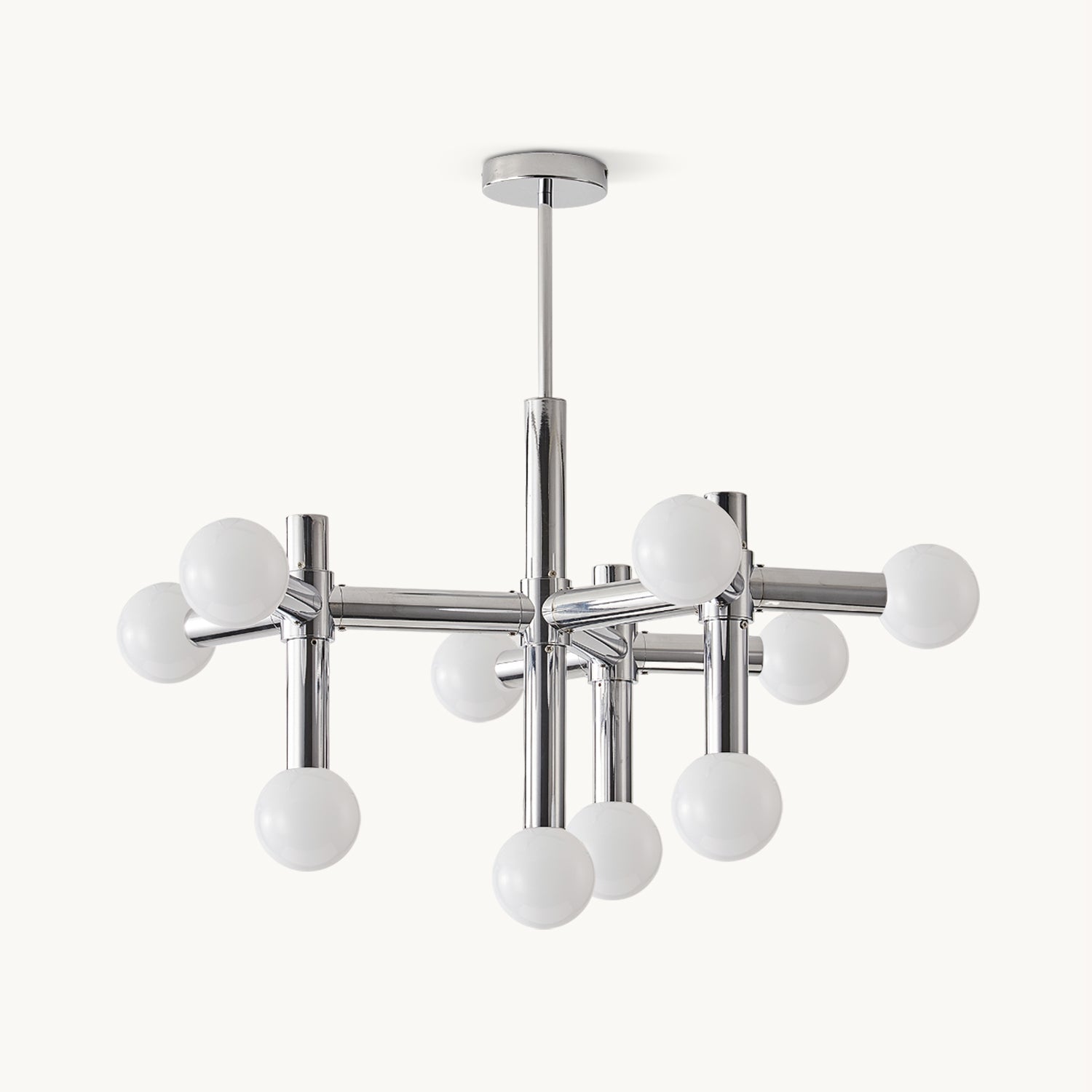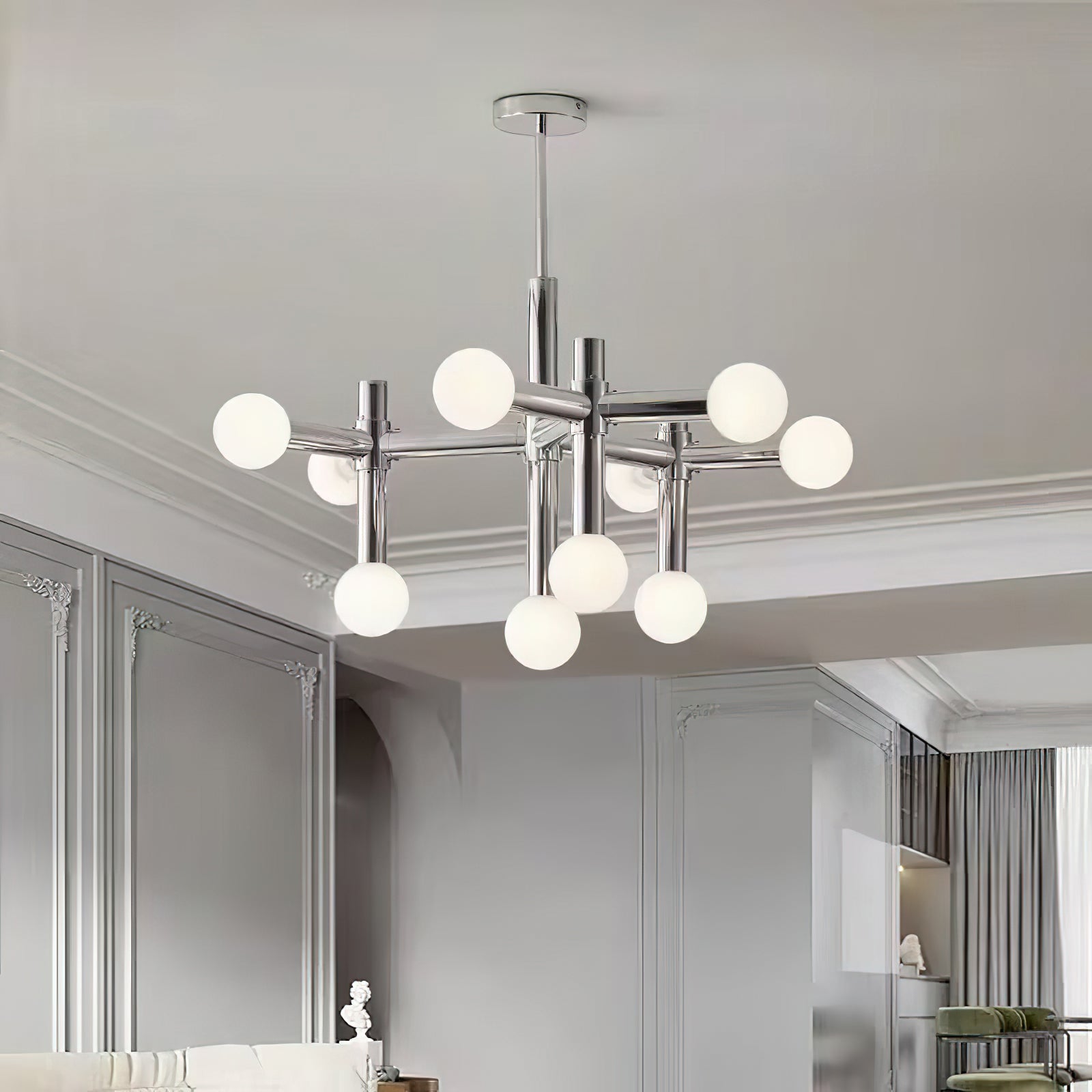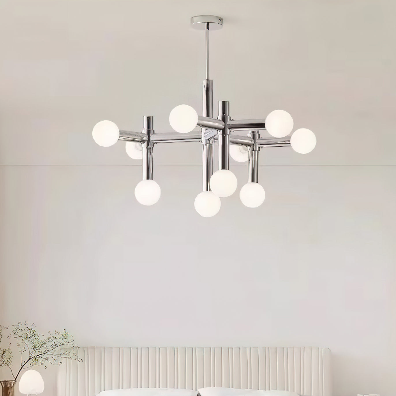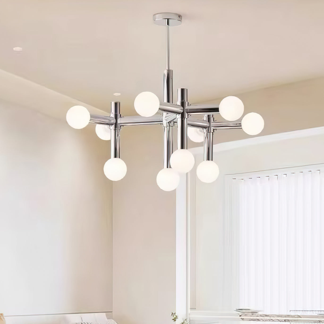 Elevate your home with the Alcobendas Network Chandelier. Its flexible design, chrome finish, and 10 lights create a minimalist yet glamorous look. The cozy glow adds an inviting feel, while the modern and eye-catching style complements your decor. Indulge in luxury and style with this exclusive statement piece.