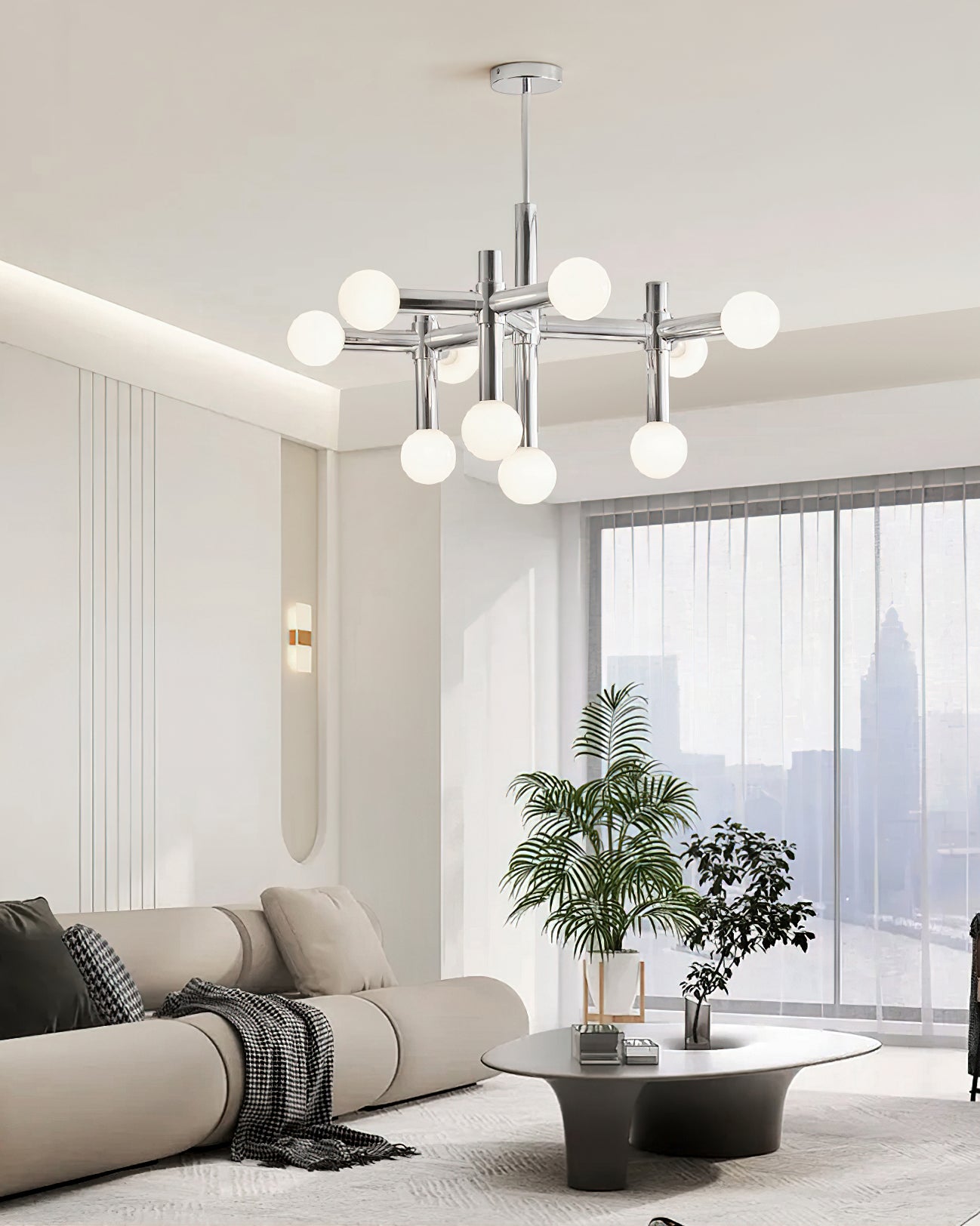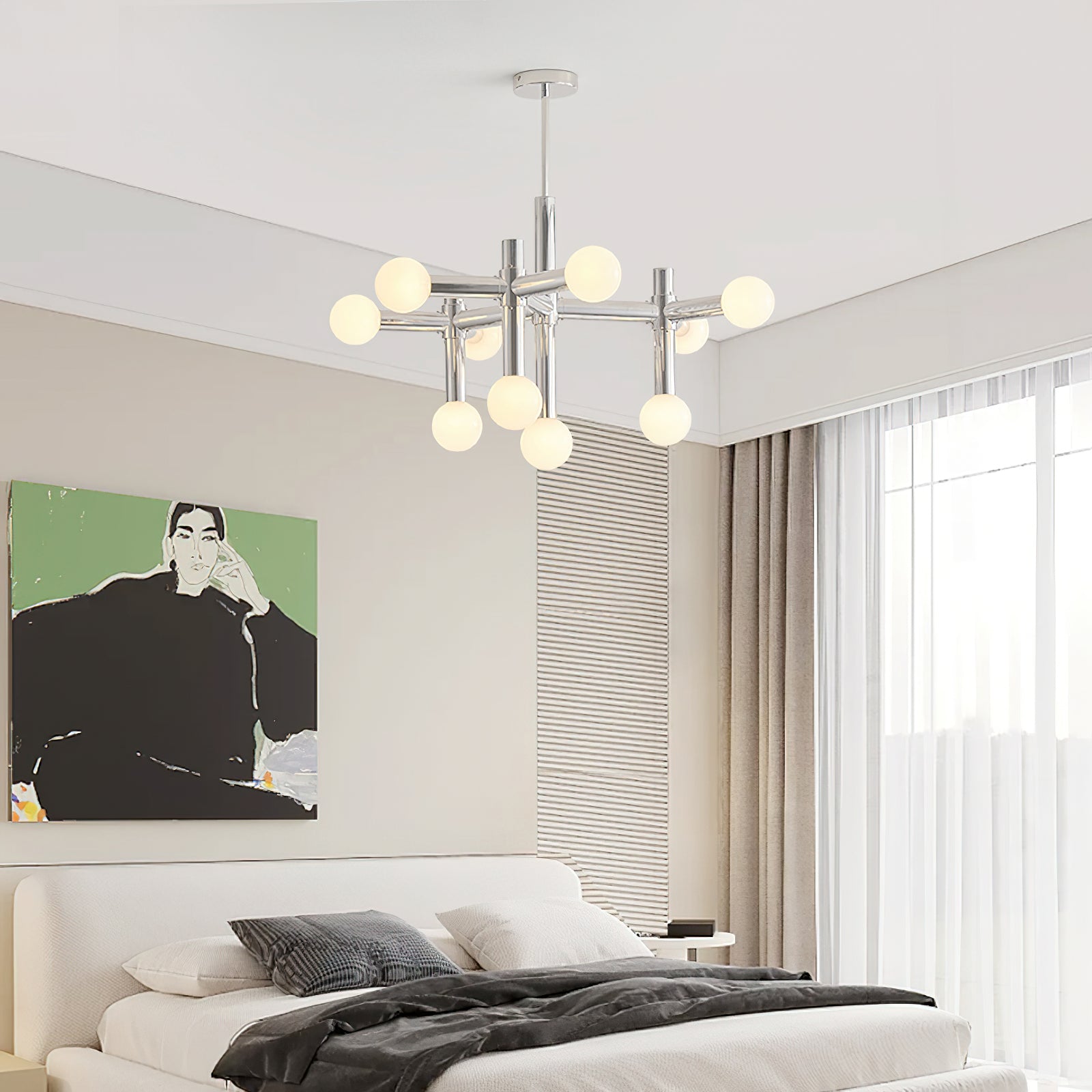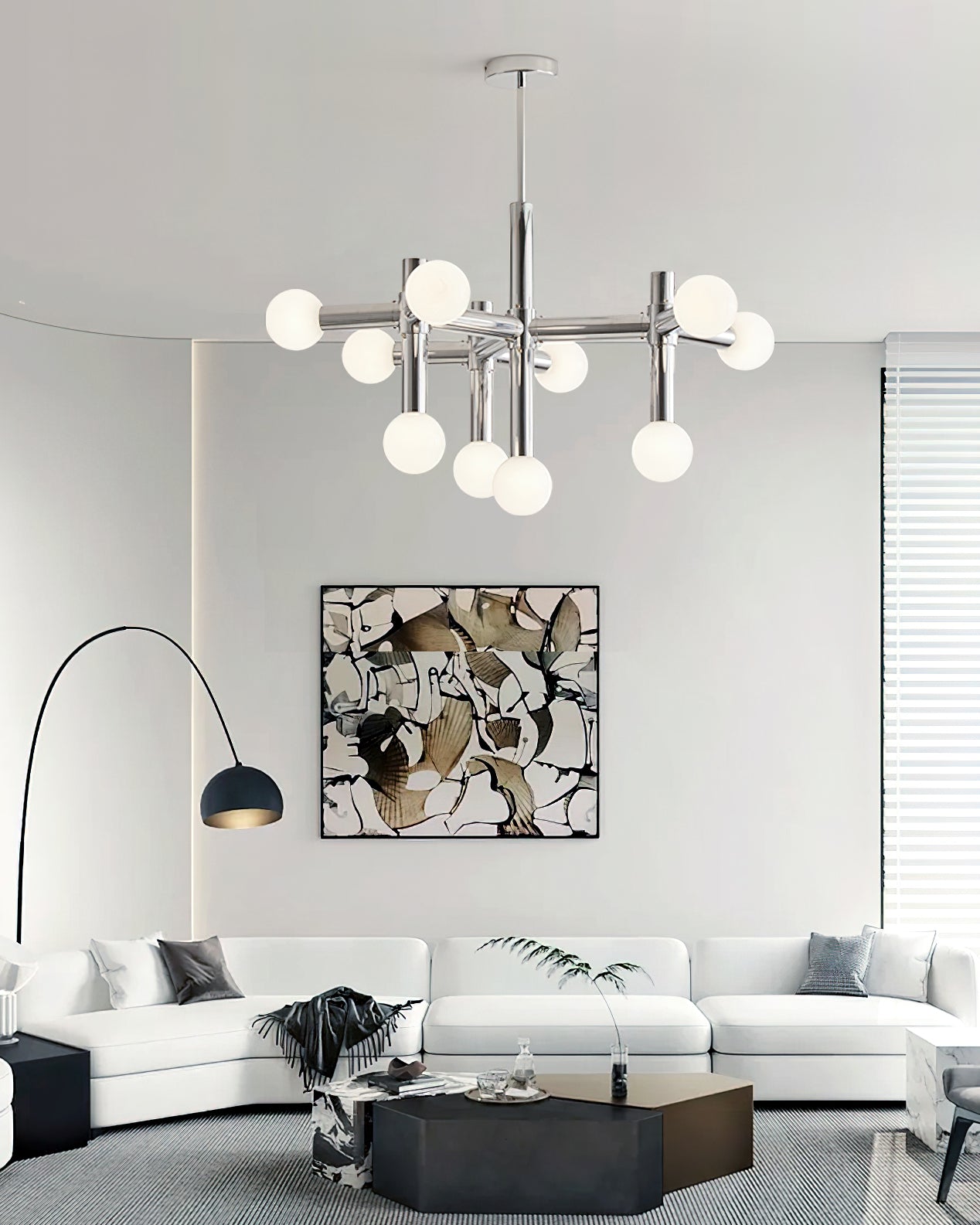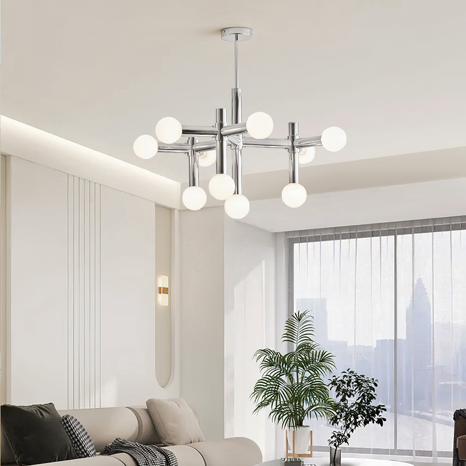 Elevate your home with the Alcobendas Network Chandelier. Its flexible design, chrome finish, and 10 lights create a minimalist yet glamorous look. The cozy glow adds an inviting feel, while the modern and eye-catching style complements your decor. Indulge in luxury and style with this exclusive statement piece.