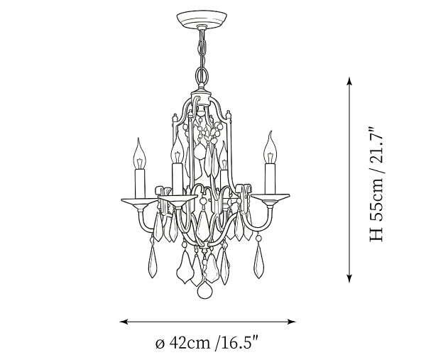 - 4-Lights Size: Dia 42cm x H 55cm / ∅ 16.5″ x H 21.7″