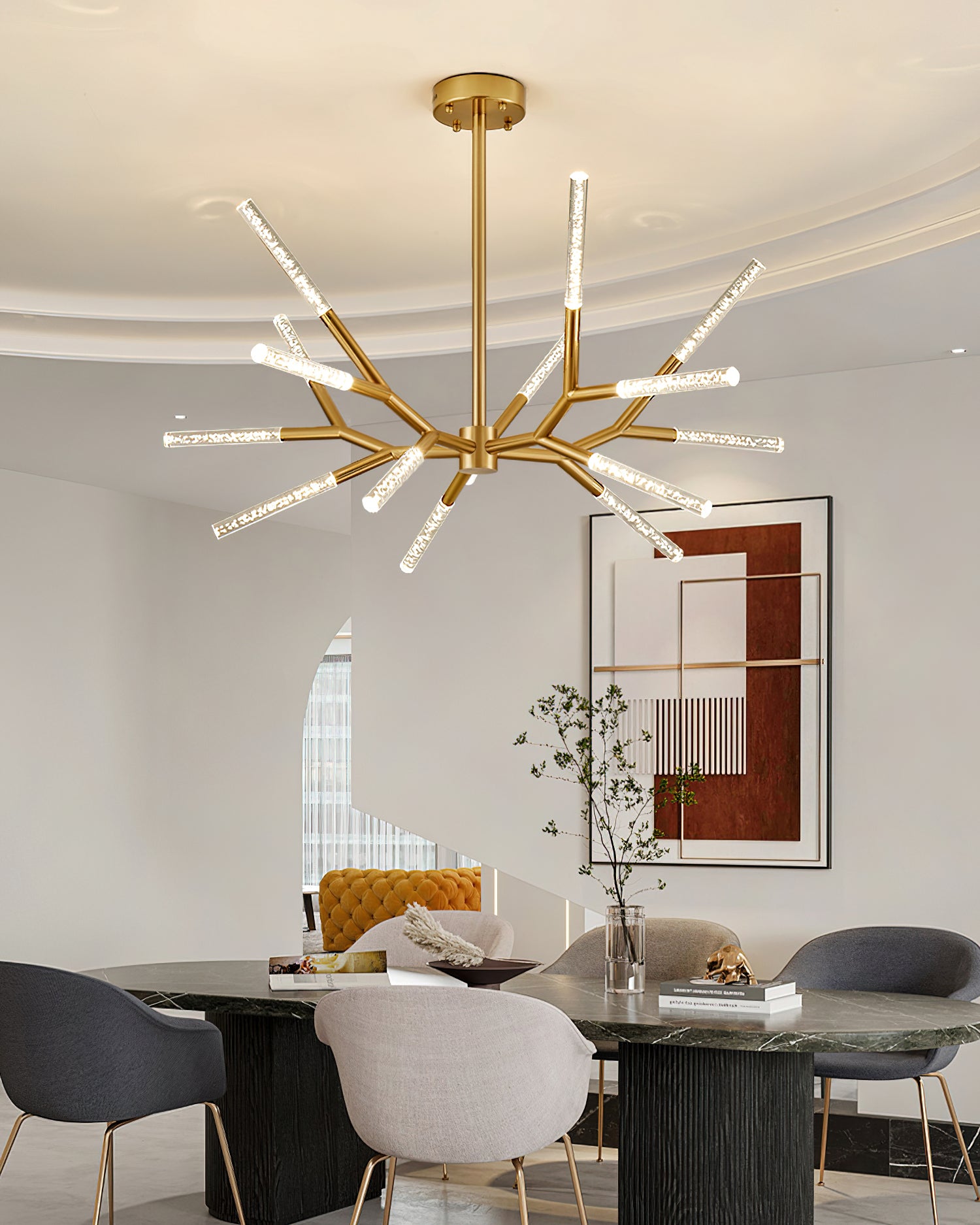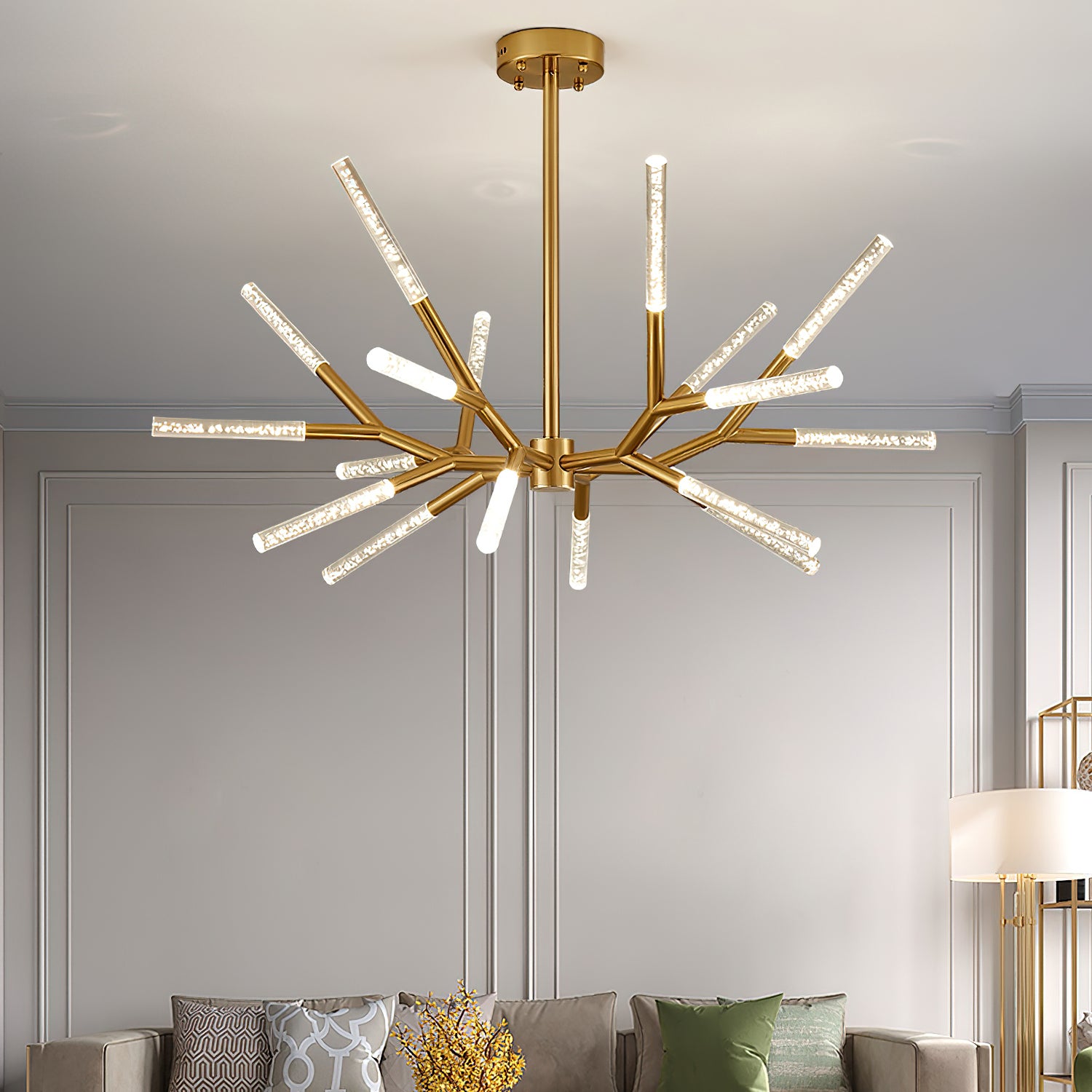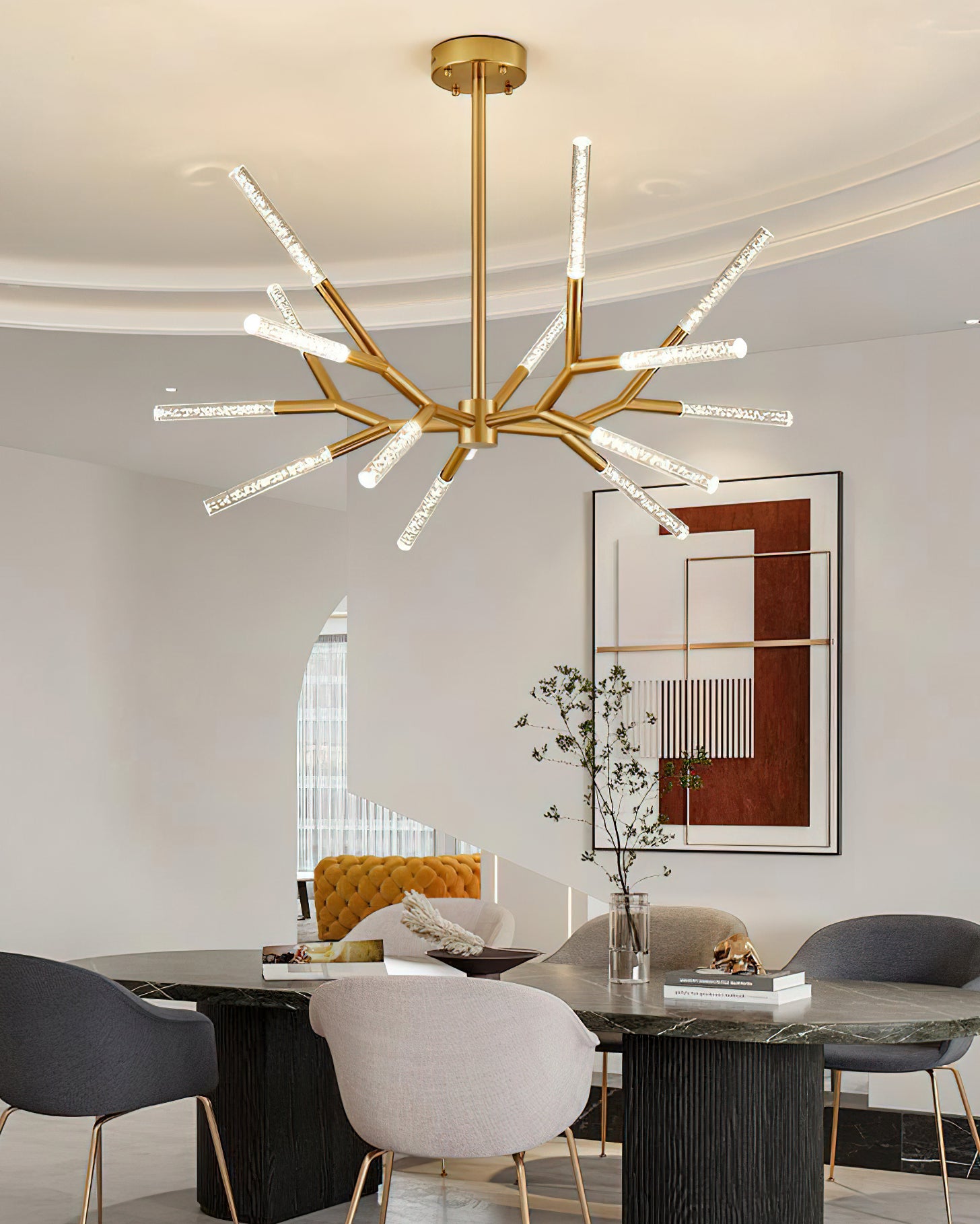 Transform your space with the Aliano Tree Branches Chandelier. Inspired by nature, this unique piece adds a touch of elegance with sparkling bubble crystal columns. The intricate details are illuminated by LED lighting, creating a captivating ambiance. This chandelier is available in black or gold, combining innovative design and luxurious materials for a contemporary and stylish addition to any decor.