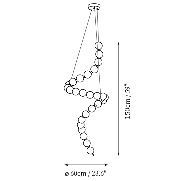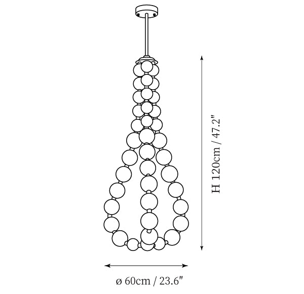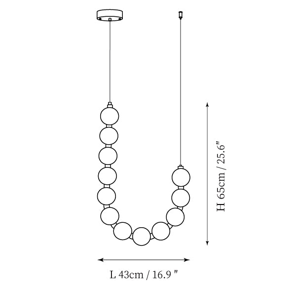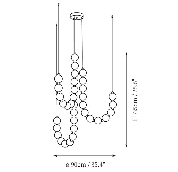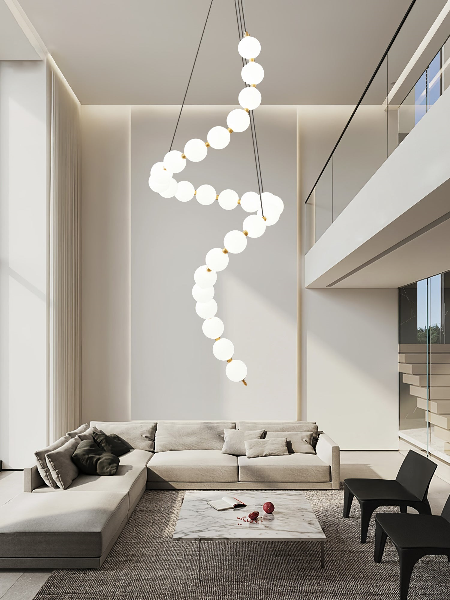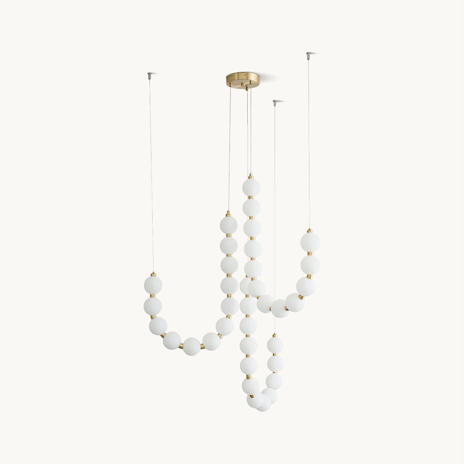 The Alorbe Pearl Necklace Chandelier from Mooijane features a graceful arrangement of white orbs suspended from a sleek brass frame, evoking the elegance of a pearl necklace. Its sculptural design adds visual interest while casting a soft, inviting glow. Ideal for dining rooms, living spaces, or entryways, this chandelier blends timeless charm with contemporary style to create a warm, welcoming ambiance.