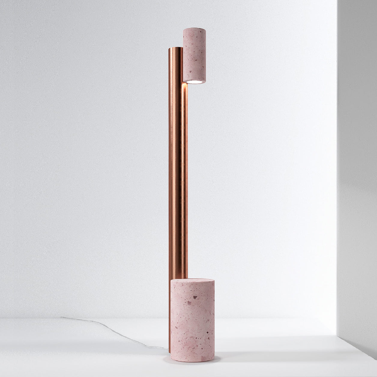 Is a beautiful and poetic way to combine two materials like rock and iron in one piece, creating different visual levels in a simple and modern object. The subtle shape of Ambra creates contrast and at the same time a perfect balance with the visual weight of the pink. Ambra has a timeless style that fits perfectly in any environment creating a dramatic light glow.
