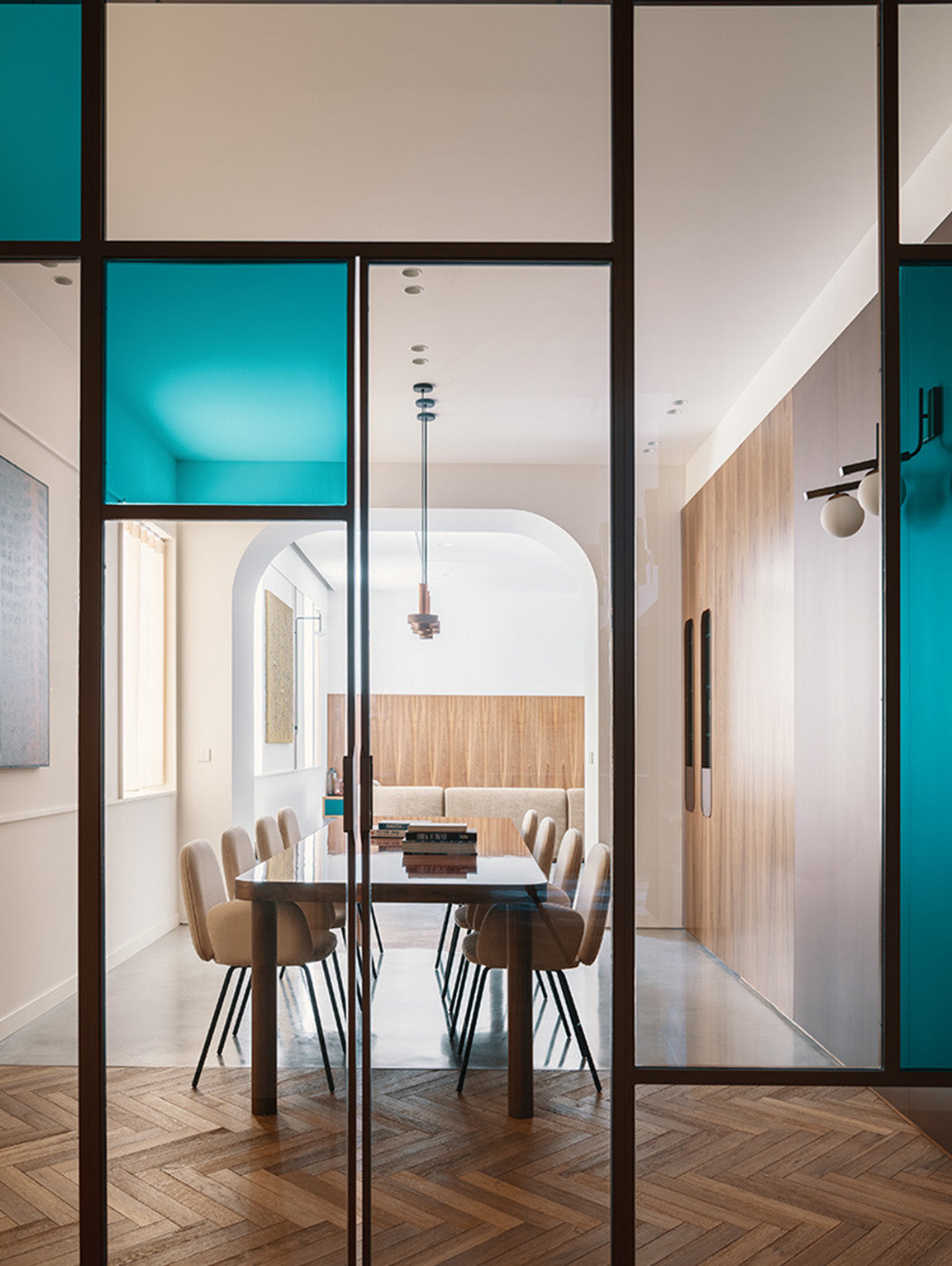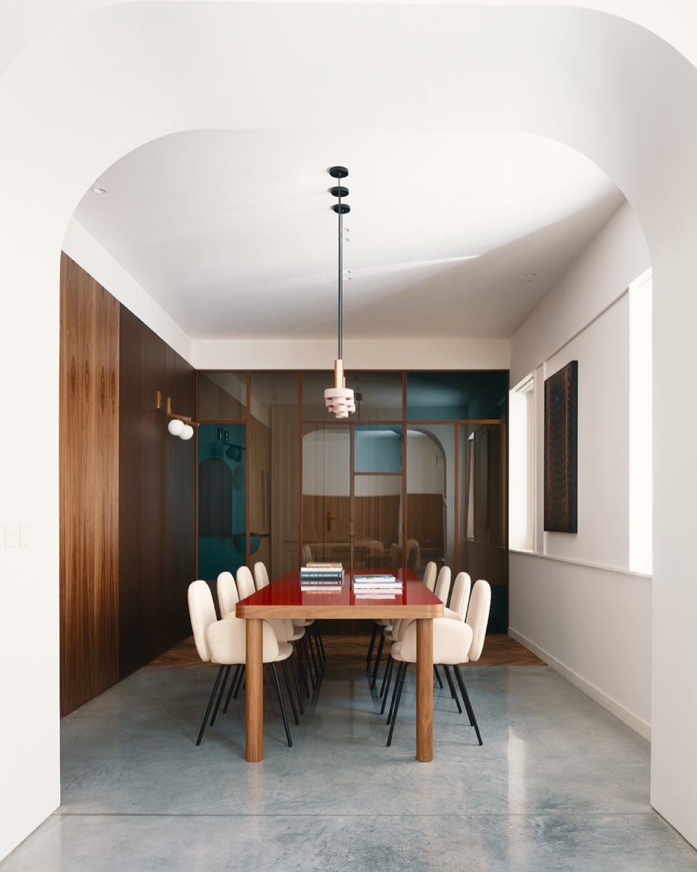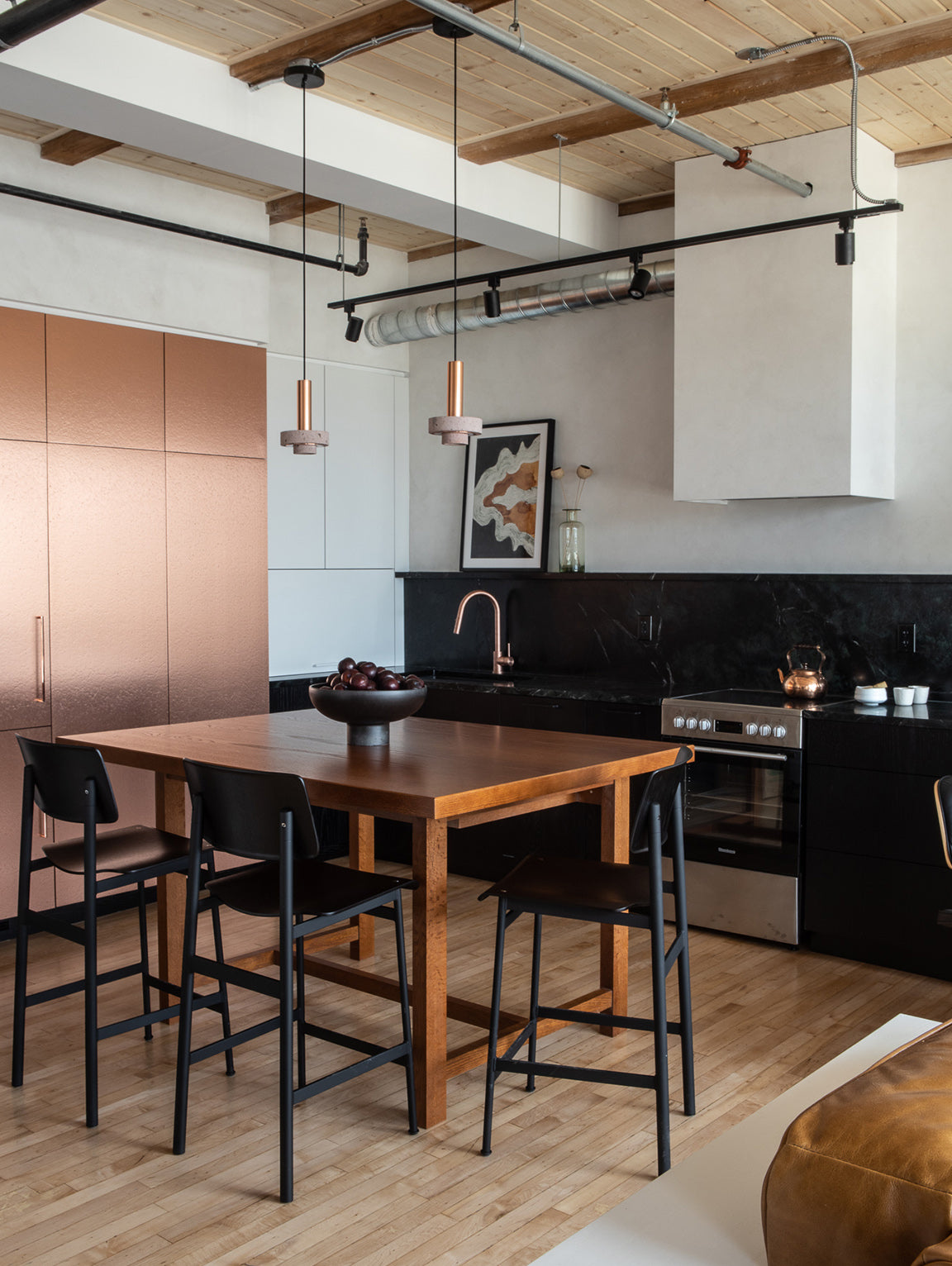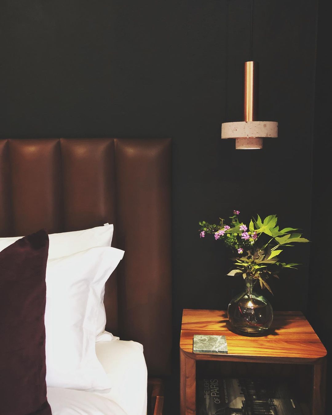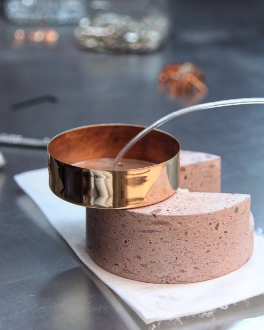 Ambra pendant´s timeless geometrical form speaks to us about architecture. Characterful and with strong lines, it is simply shaped and elegant. The proportions play with gravity, overlapping both materials. It becomes the center of attention with its warm and vibrant light. The unquestionable rich aesthetic of brushed copper and the stunning volcanic rock texture becomes a sculpture of light.