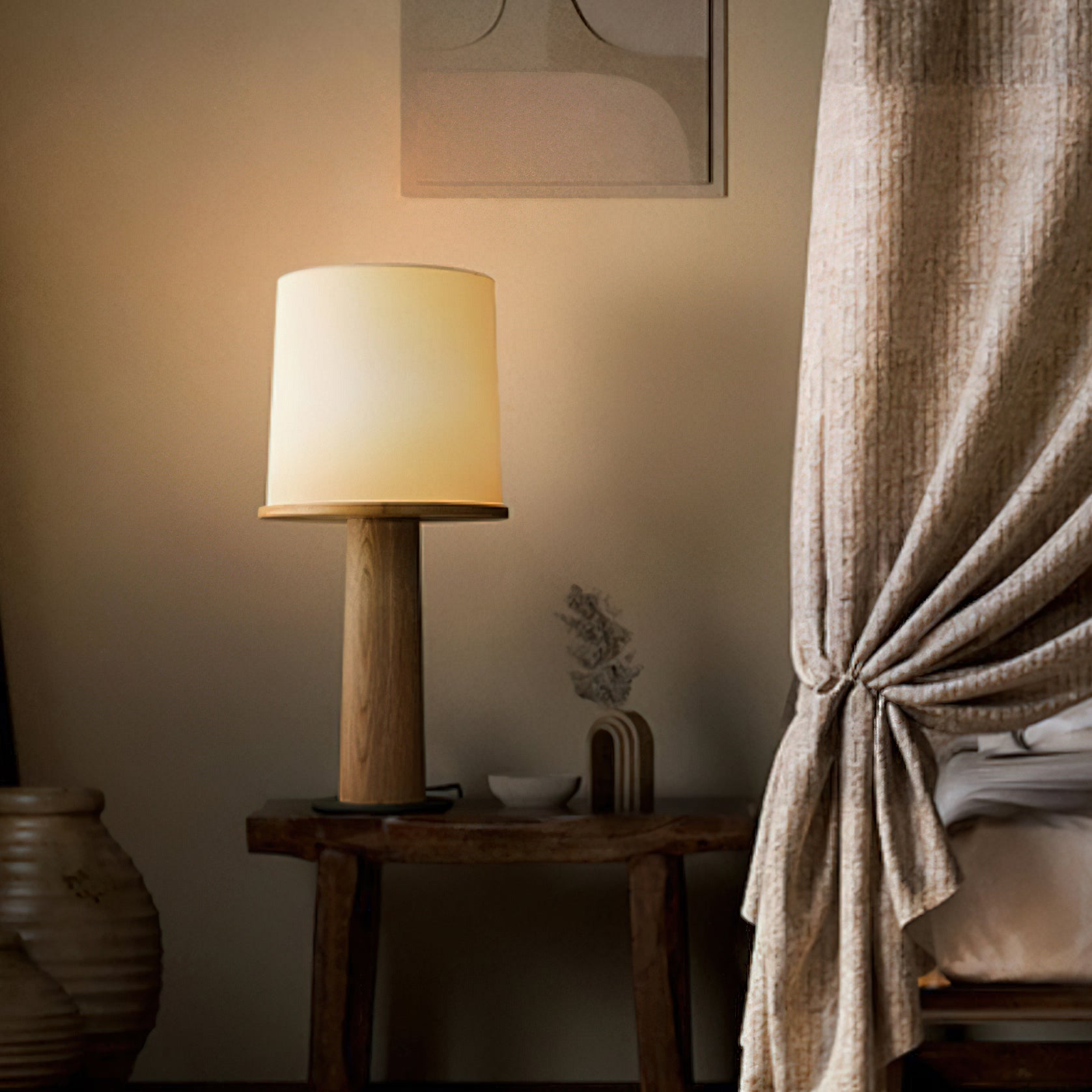 The Amire Table Lamp from Mooijane blends natural warmth with modern simplicity. Featuring a solid wooden base and a soft off-white shade, it casts a gentle, calming glow ideal for bedrooms, workspaces, or side tables. Its timeless design adds a serene, organic touch to any interior.