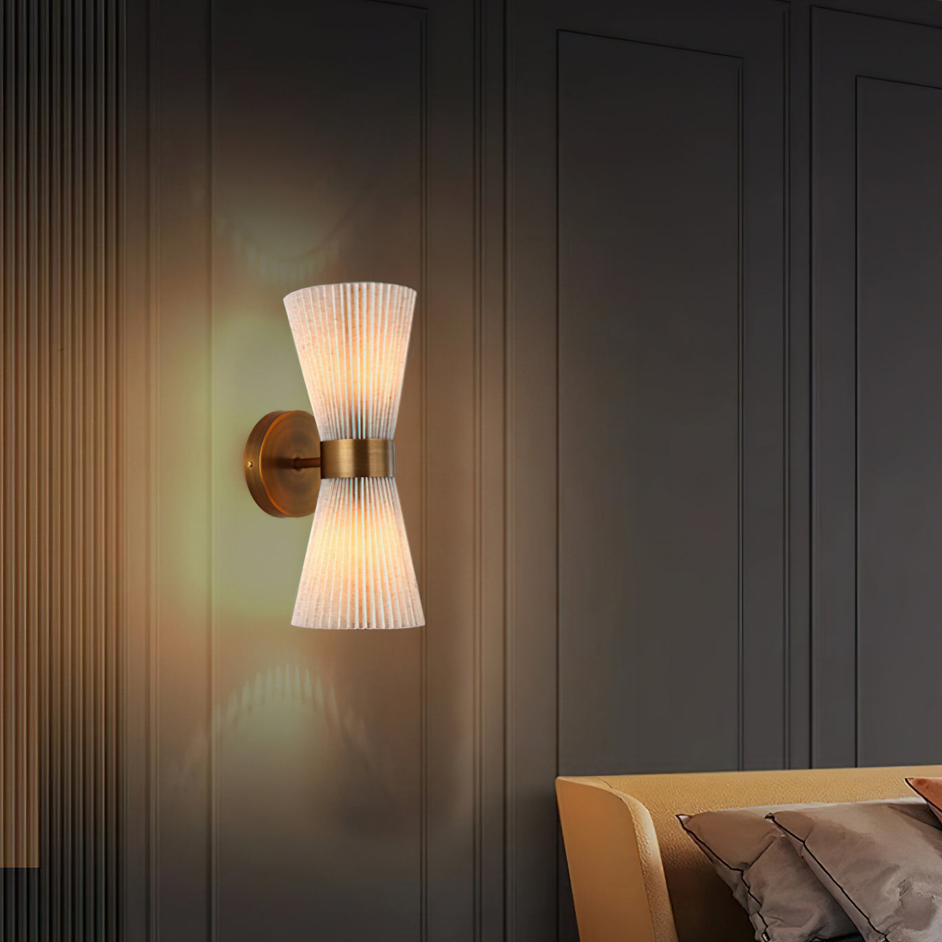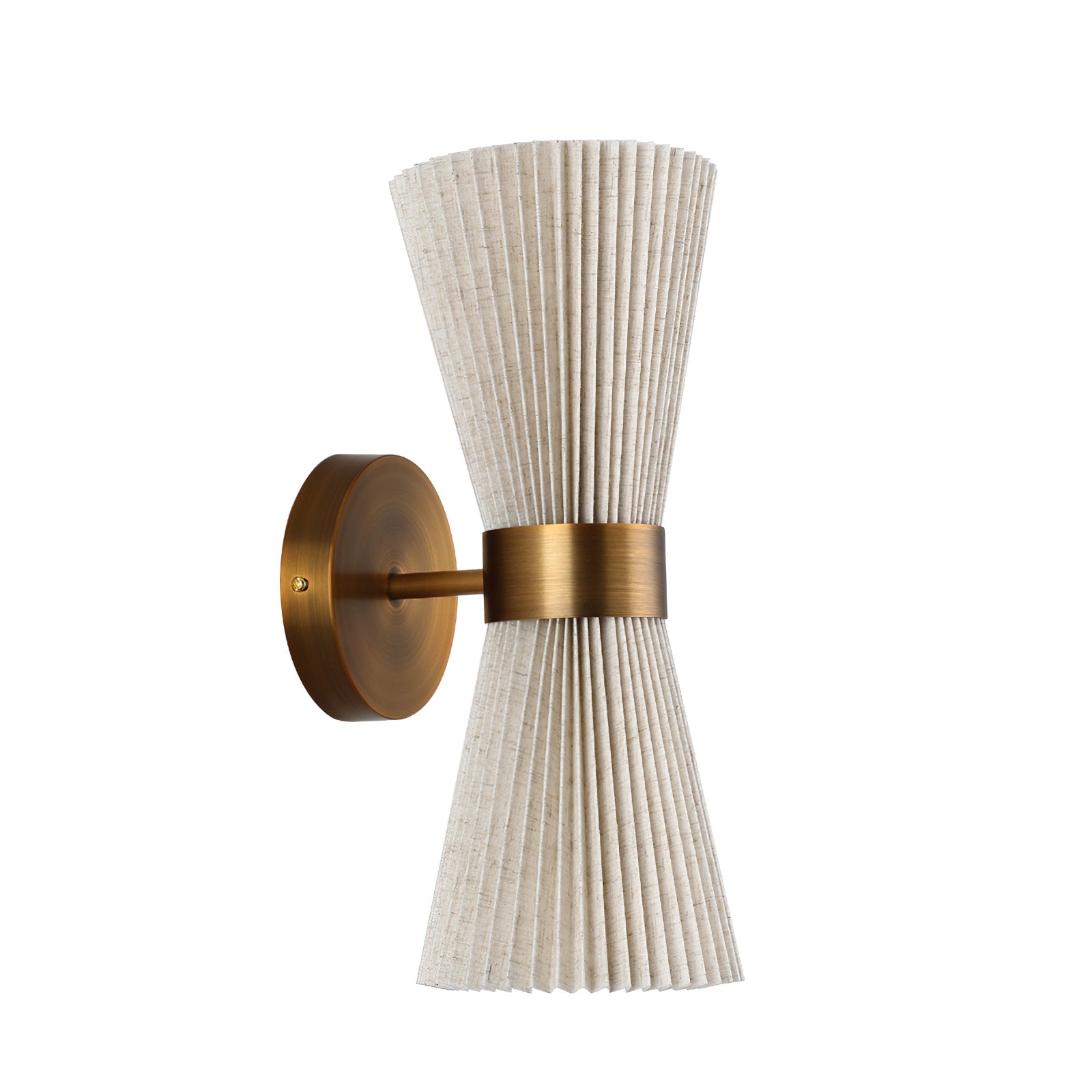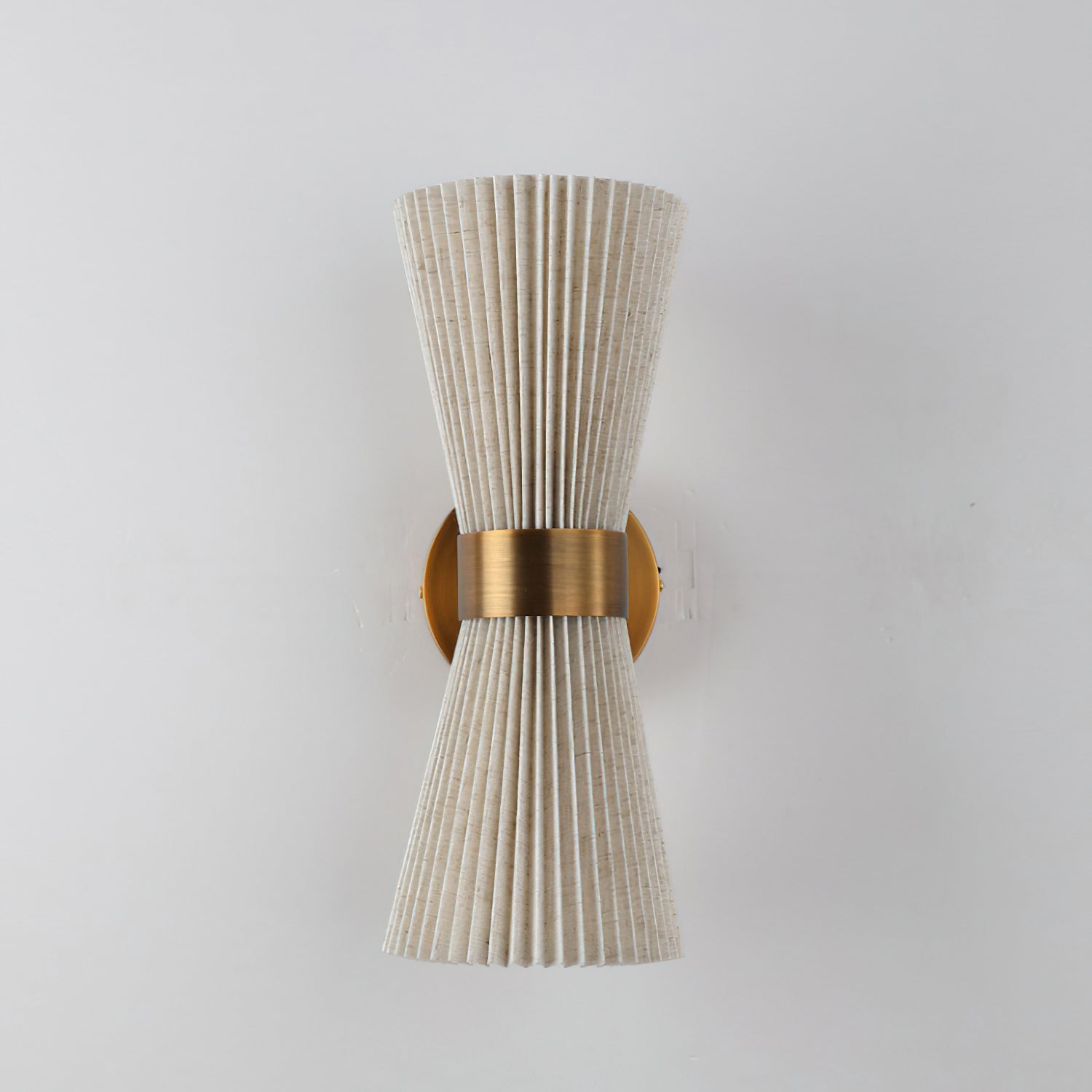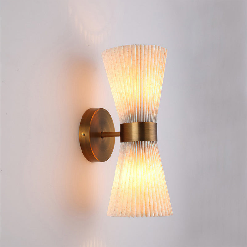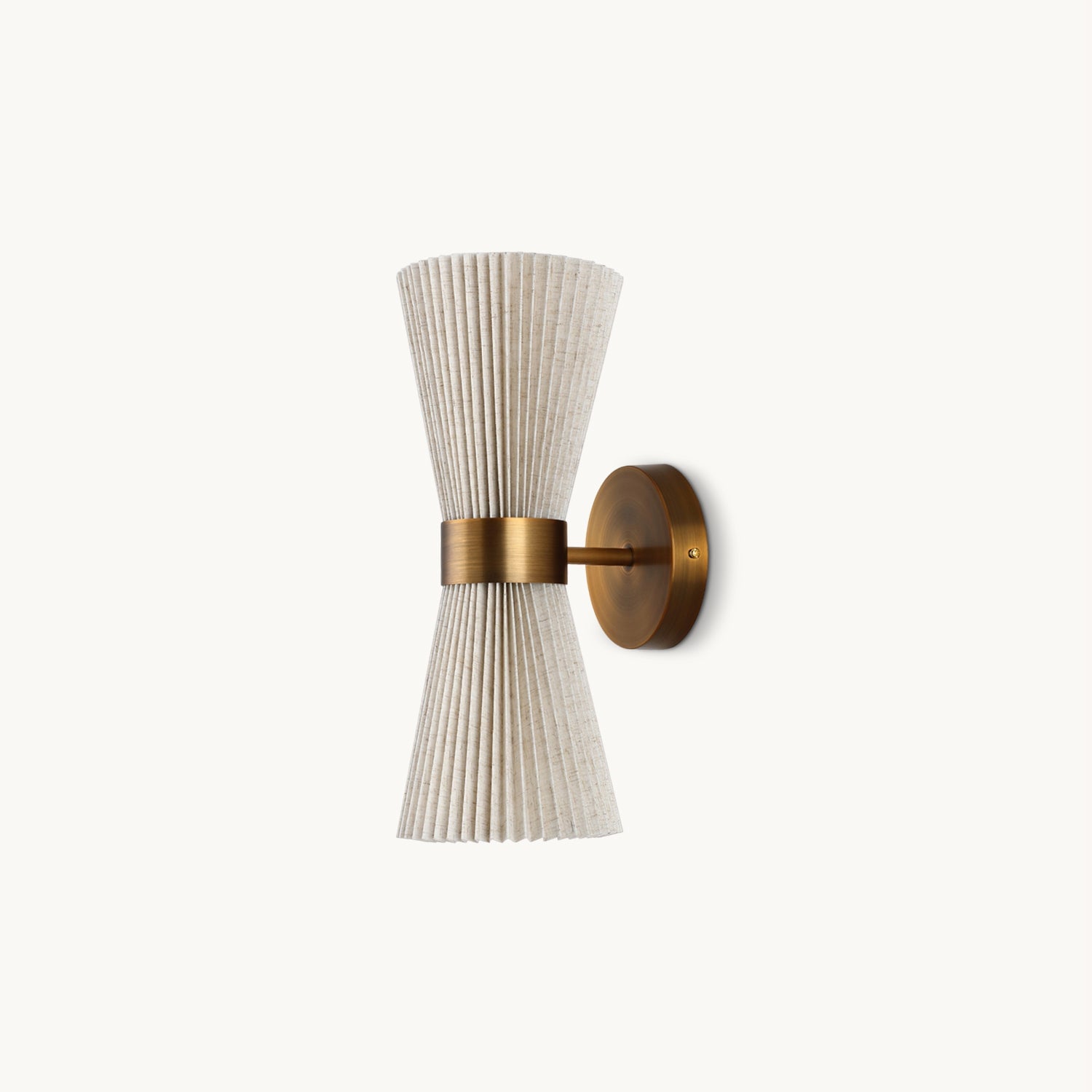 The Amore Wall Lamp by Mooijane features an elegant hourglass silhouette that effortlessly blends simplicity with artistic flair. Crafted from brass with a gently aged patina, its warm finish enhances the vintage appeal. The pleated fabric shade adds texture and softness, diffusing a warm, ambient glow. Ideal for hallways, bedrooms, or living room accent walls, this piece brings a sense of quiet sophistication and timeless charm to any interior.