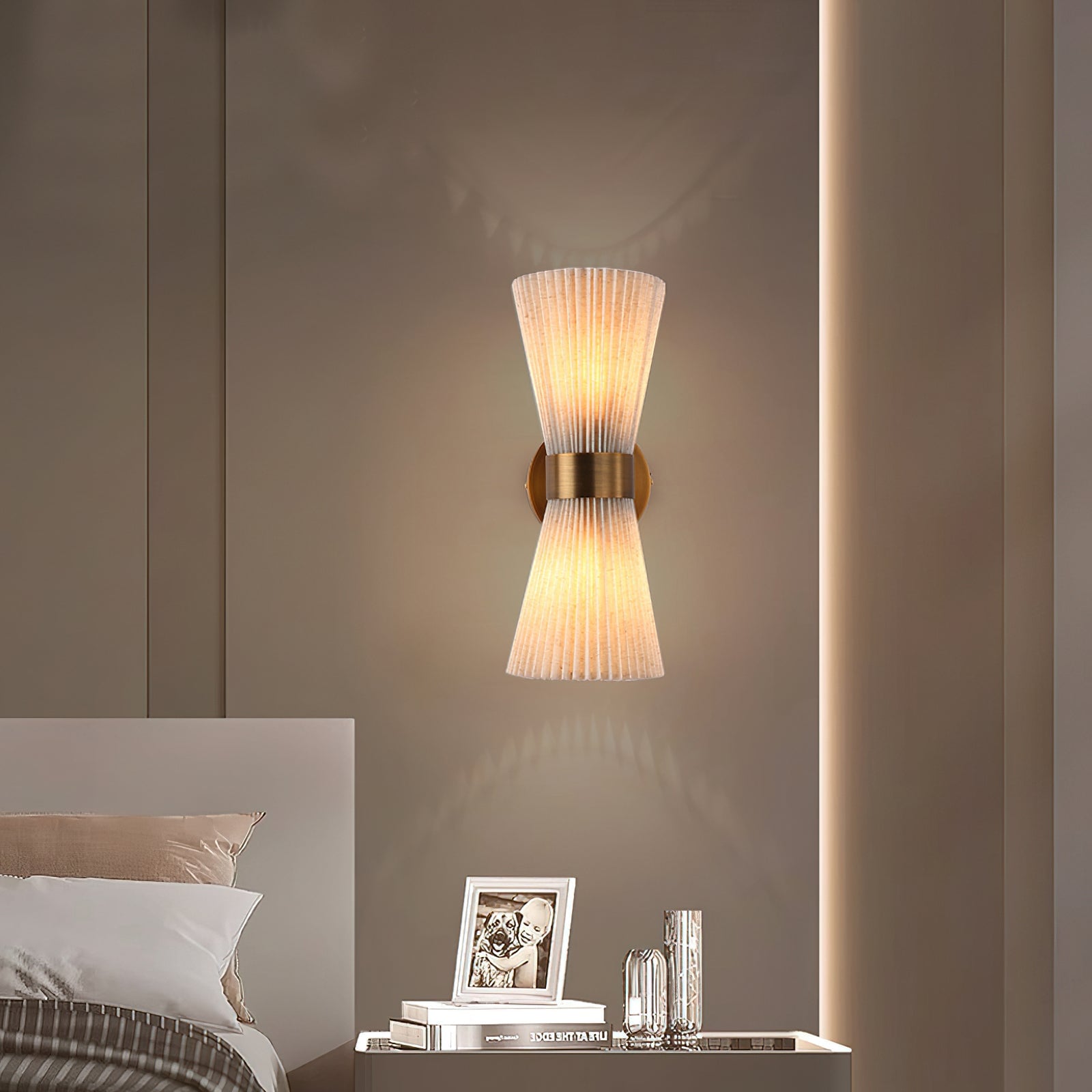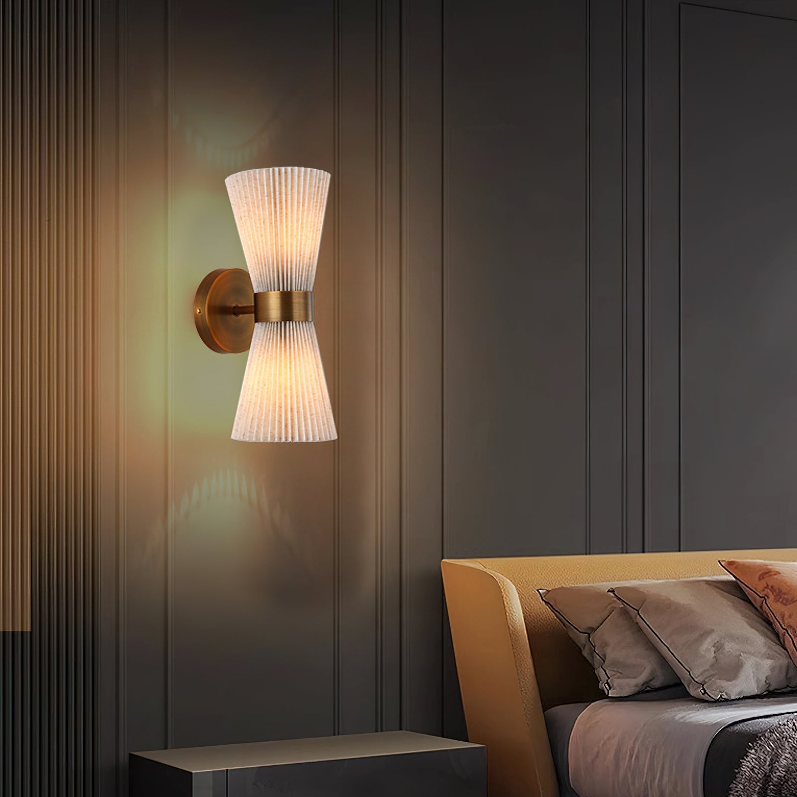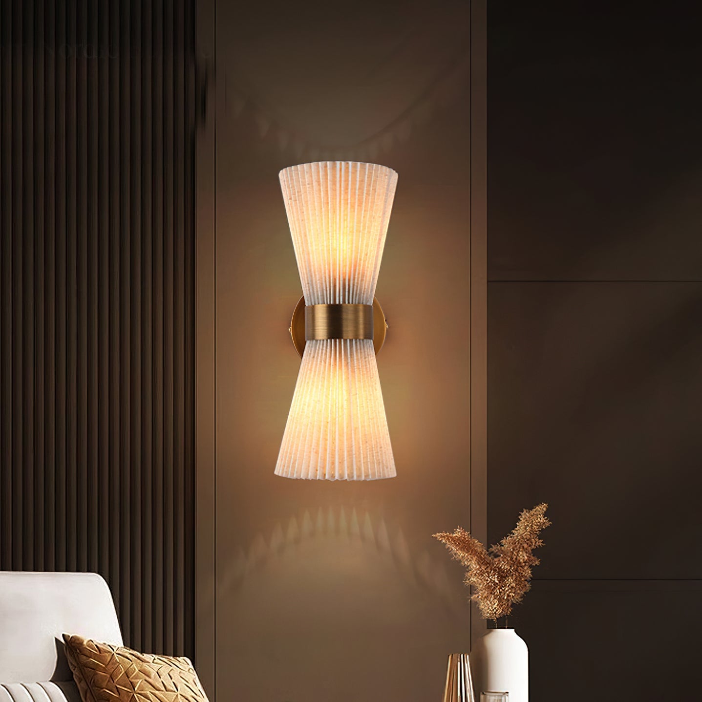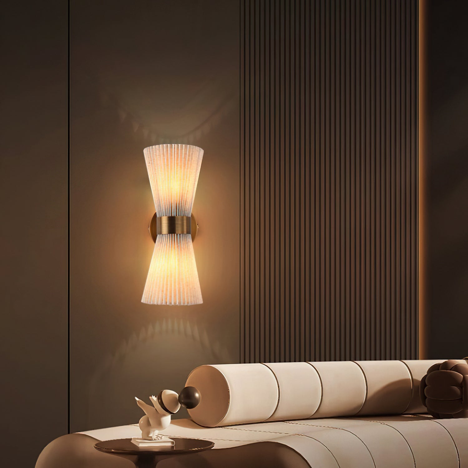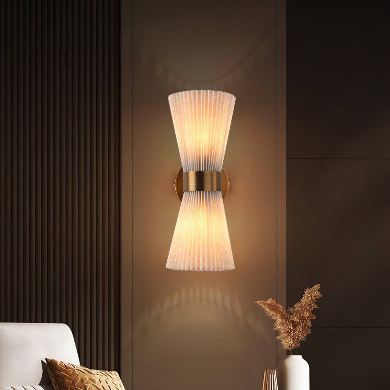 The Amore Wall Lamp by Mooijane features an elegant hourglass silhouette that effortlessly blends simplicity with artistic flair. Crafted from brass with a gently aged patina, its warm finish enhances the vintage appeal. The pleated fabric shade adds texture and softness, diffusing a warm, ambient glow. Ideal for hallways, bedrooms, or living room accent walls, this piece brings a sense of quiet sophistication and timeless charm to any interior.