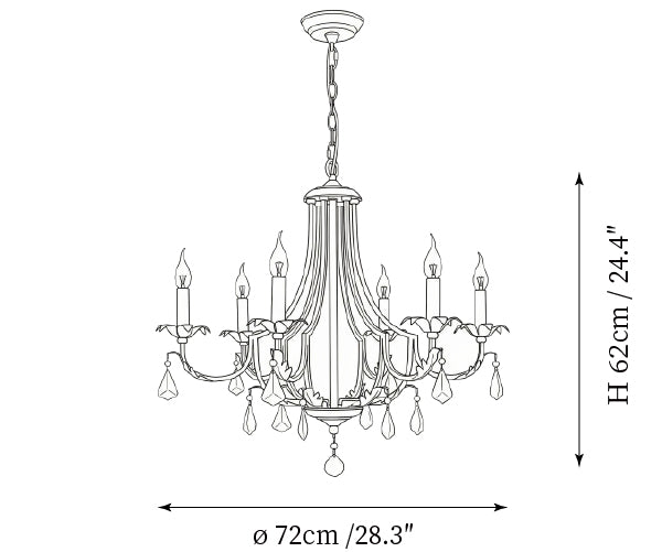 - 6-Lights Size: Dia 72cm x H 62cm / ∅ 28.3″ x H 24.4″