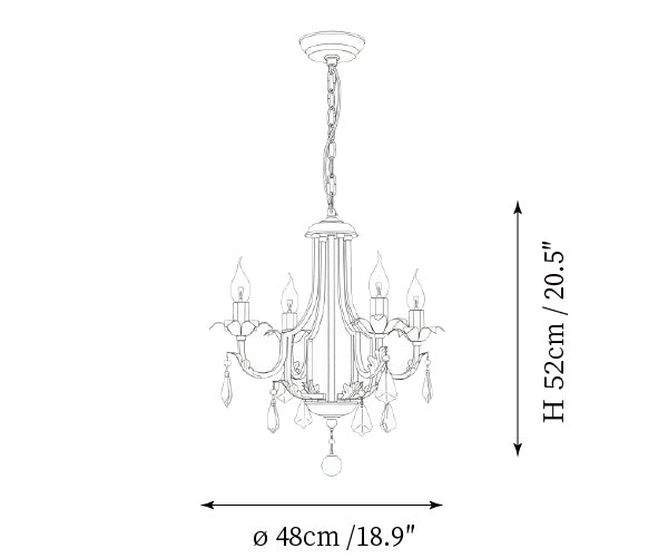 - 4-Lights Size: Dia 48cm x H 52cm / ∅ 18.9″ x H 20.5″