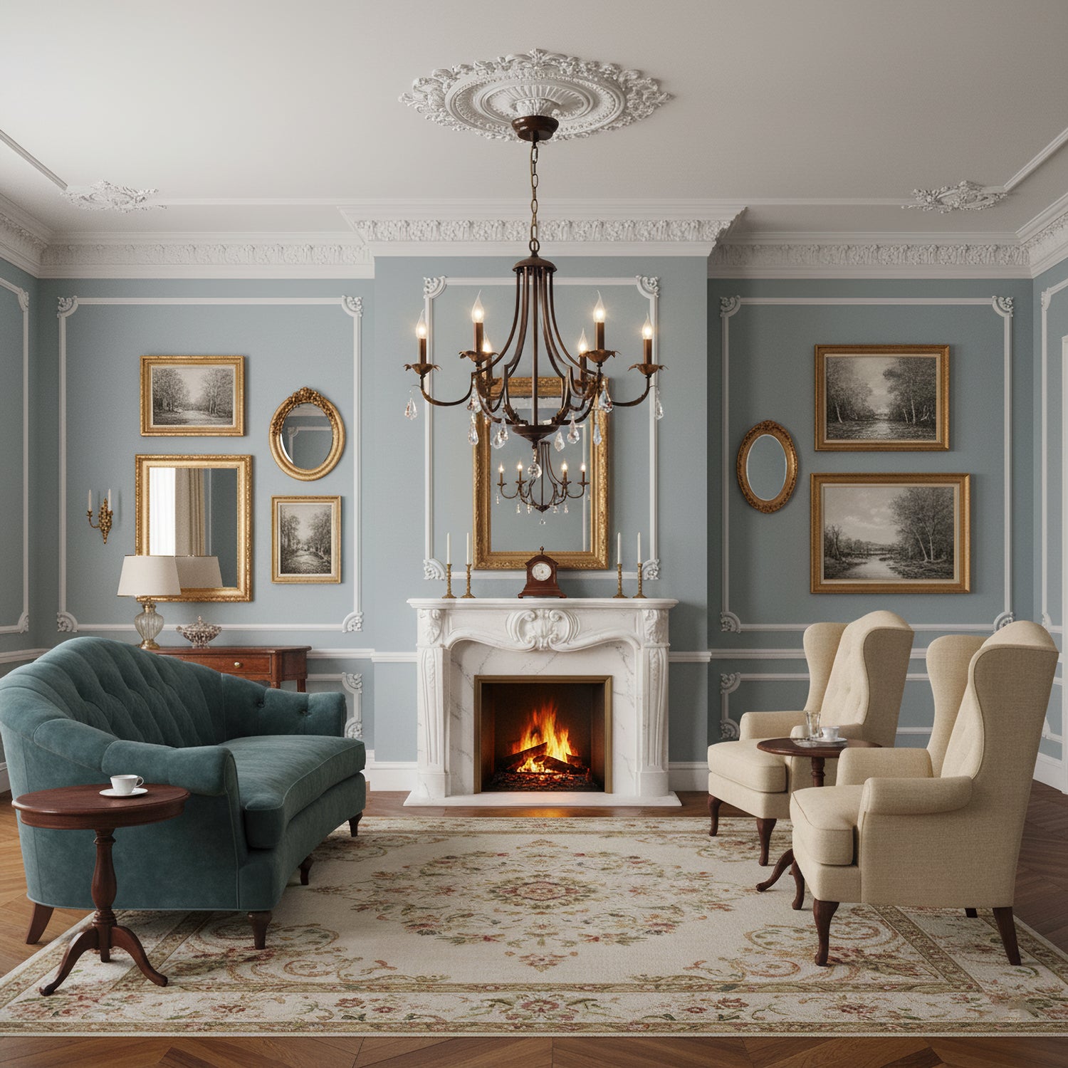 The Andover Chandelier by Mooijane embodies classic European elegance with its finely crafted wrought iron frame and graceful curves. Crystal pendants accent the design, reflecting light in soft, shimmering highlights that add depth and luxury. Candle-style lights enhance its traditional charm, casting a warm, romantic glow.