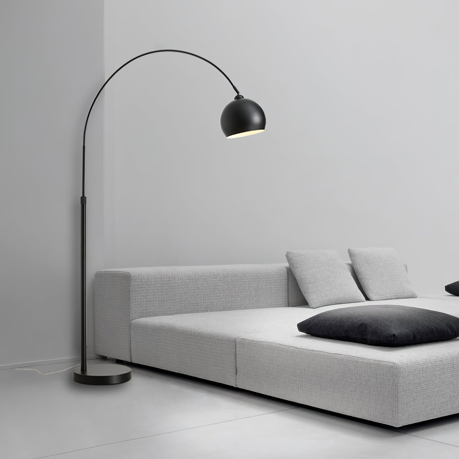 The Angler Slimline LED Pole Floor Lamp is a modern, stylish lighting solution with a minimalist appeal. It features a sleek, arched pole that elegantly curves over furniture, making it perfect for creating overhead lighting without the need for ceiling fixtures. The lamp is anchored by a round, stable base, and the slim black metal body adds a contemporary touch. At the end of the arch, a rounded, matte black lampshade directs light downward, providing focused illumination ideal for reading or accenting a specific area. This floor lamp is versatile for various interior styles, from modern to industrial, and is an excellent choice for living rooms, lounges, or study spaces where functional yet aesthetic lighting is desired.