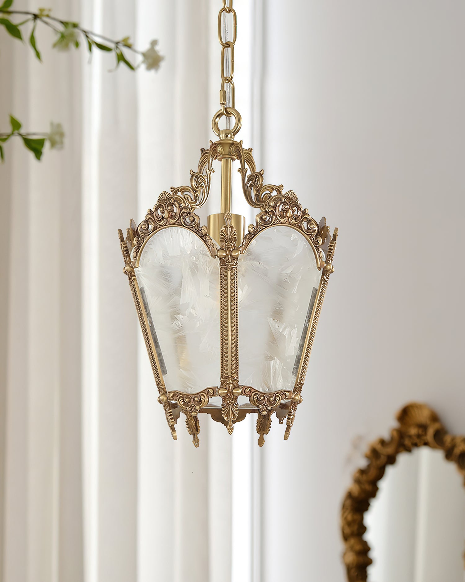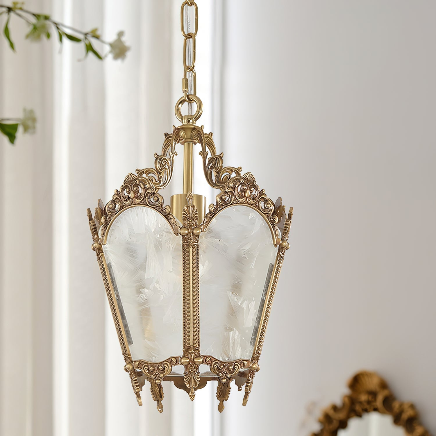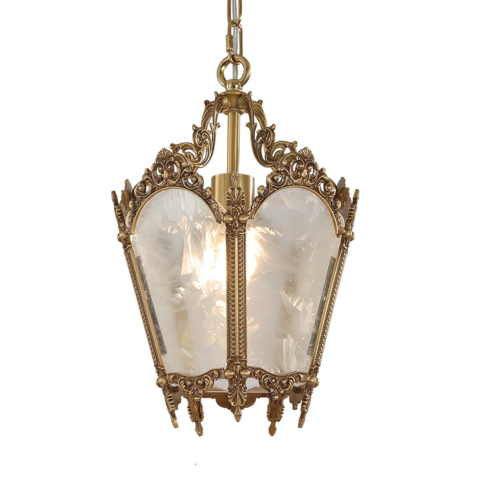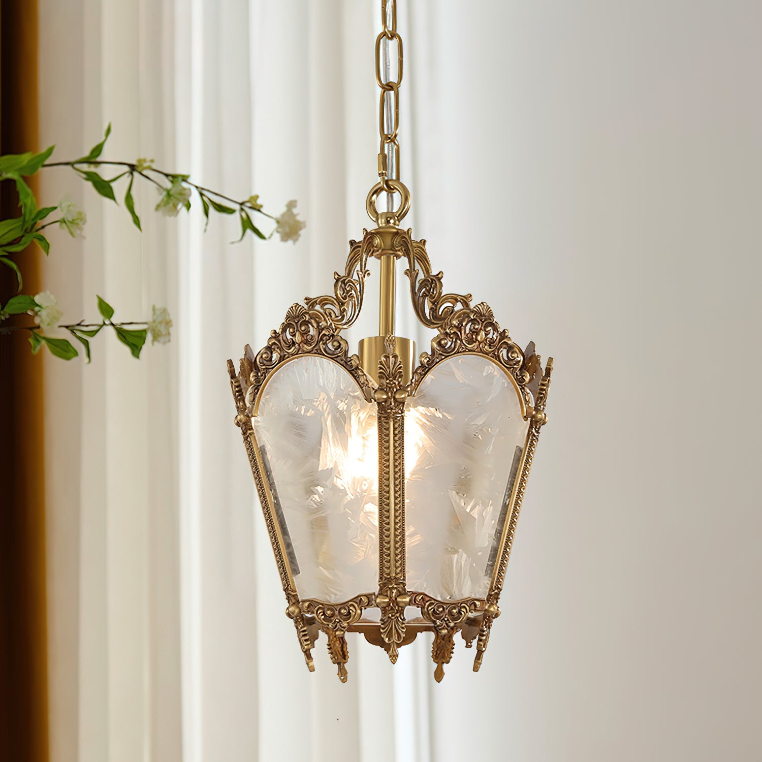 Upgrade your interior with our Antique Lantern Pendant Lamp from Mooijane. The lantern design adds a romantic and mysterious touch, while the delicate ice glass lampshade adds artistic beauty. Illuminate any indoor area with its soft and elegant lighting. Perfect for kitchens, bars, workshops, and more.