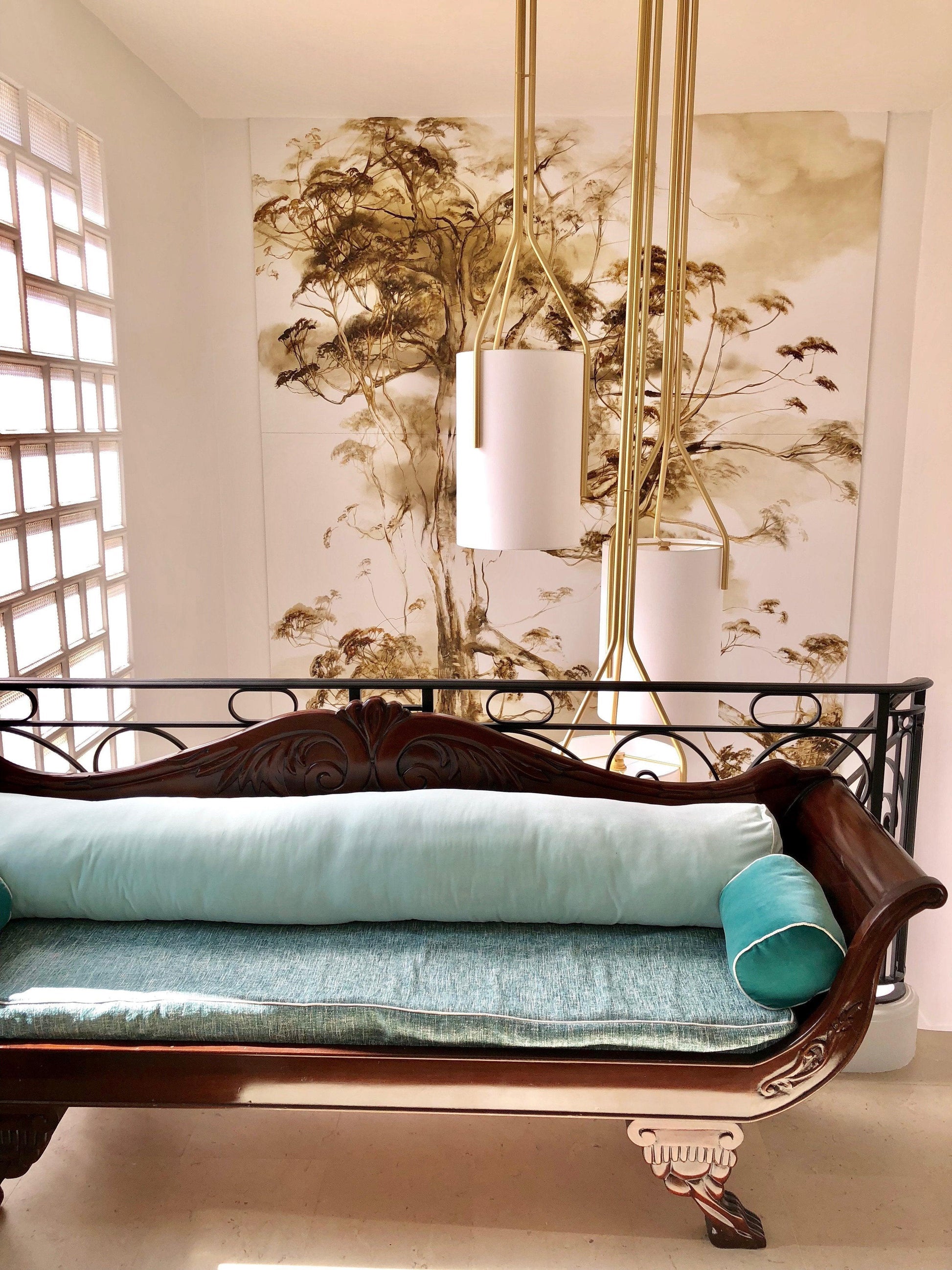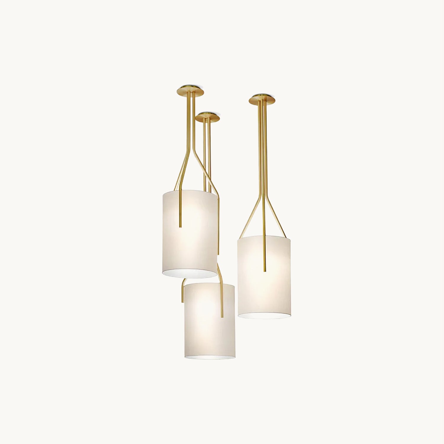 As the name suggests, this sleek chandelier lamp has a graceful tree-like form that supports its cylindrical paper-fiber shade. Open collection, Arborescence is a complete range that comes in different sizes. Scalable, you have the opportunity to focus on tailor-made. Custom height. LED and DALI version on request. The stylish and minimalist Arborescence chandelier lamp. The stylish and minimalist Arborescence features a white cloth hood, and satin or polished brass finish. There are three lengths to choose from.